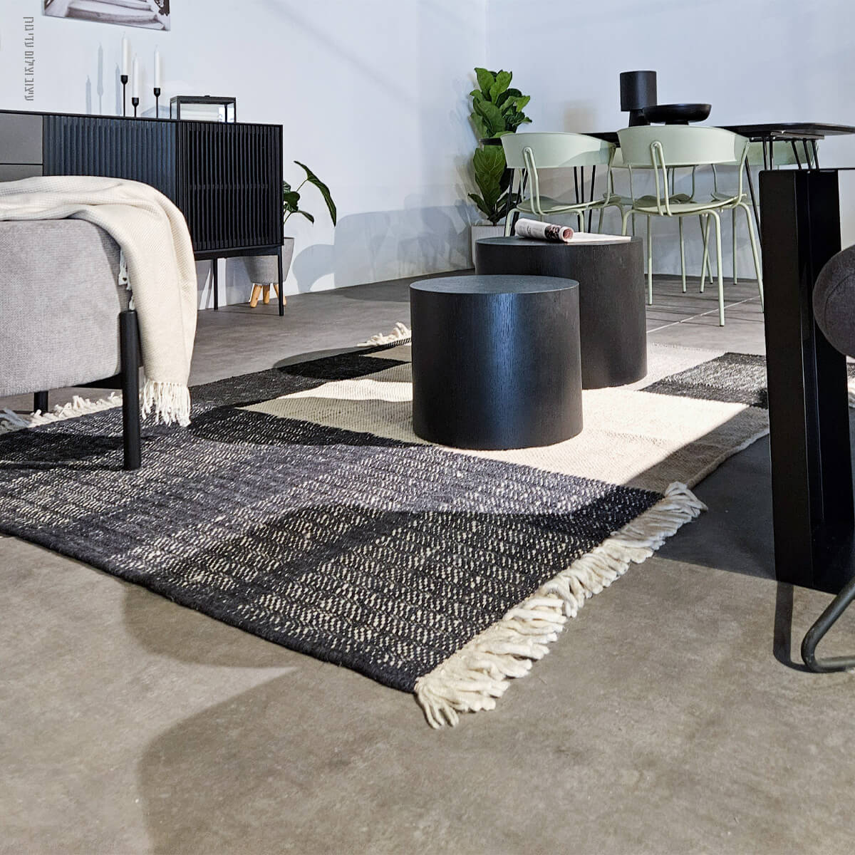 המשלב חלוקה גיאומטרית בצבעי שחור/פודרה/אפור .