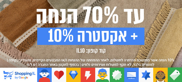 Shopping IL 2025 בשטיח האדום - מזמינים אתכם להתרשם ממגוון עצום של שטיחים מעוצבים המותאמים לכל חדר בבית במבצעים מיוחדים שלא תרצו לפספס. תוכלו למצוא שטיחים לחדרי ילדים, שטיחי מטבח ושטיחים לחדרי אמבטיה, כל אחד בעיצובים המתאימים לכל טעם וסגנון עיצובי. אם אתם מחפשים שטיח חדש שישדרג את עיצוב הבית, Shopping IL (שופינג איי אל) הוא הזמן המושלם לנצל את ההנחות ולרכוש שטיח איכותי במחיר אטרקטיבי!