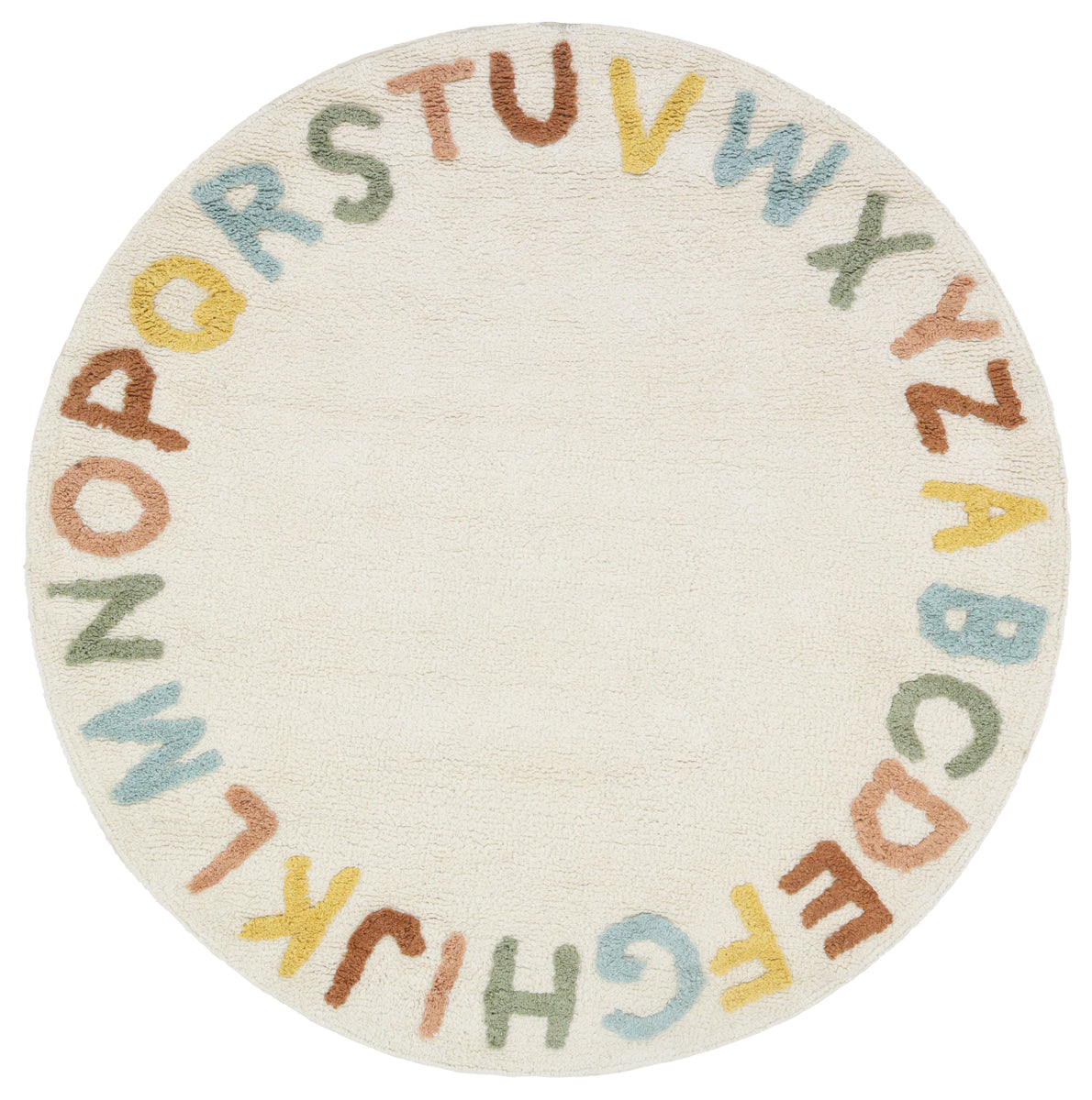 שטיח ABC הוא שטיח עגול בעבודת יד מ־100% כותנה ממוחזרת – רך, מעוצב וצבעוני בדיוק כמו שצריך לחדר הילדים.