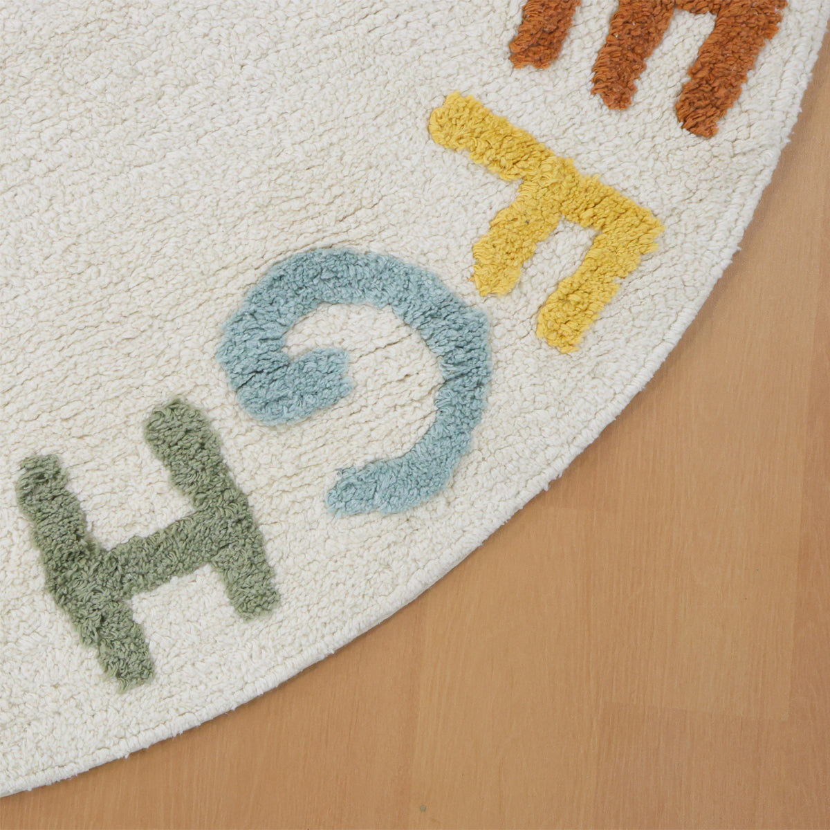 העיצוב המדויק, הצורה העגולה והטקסטורה הנעימה יוצרים שטיח שהוא גם משטח נעים למשחק ומנוחה – וגם דרך קסומה לחשוף את הילדים לעולם האותיות ובאנגלית ולעורר סקרנות