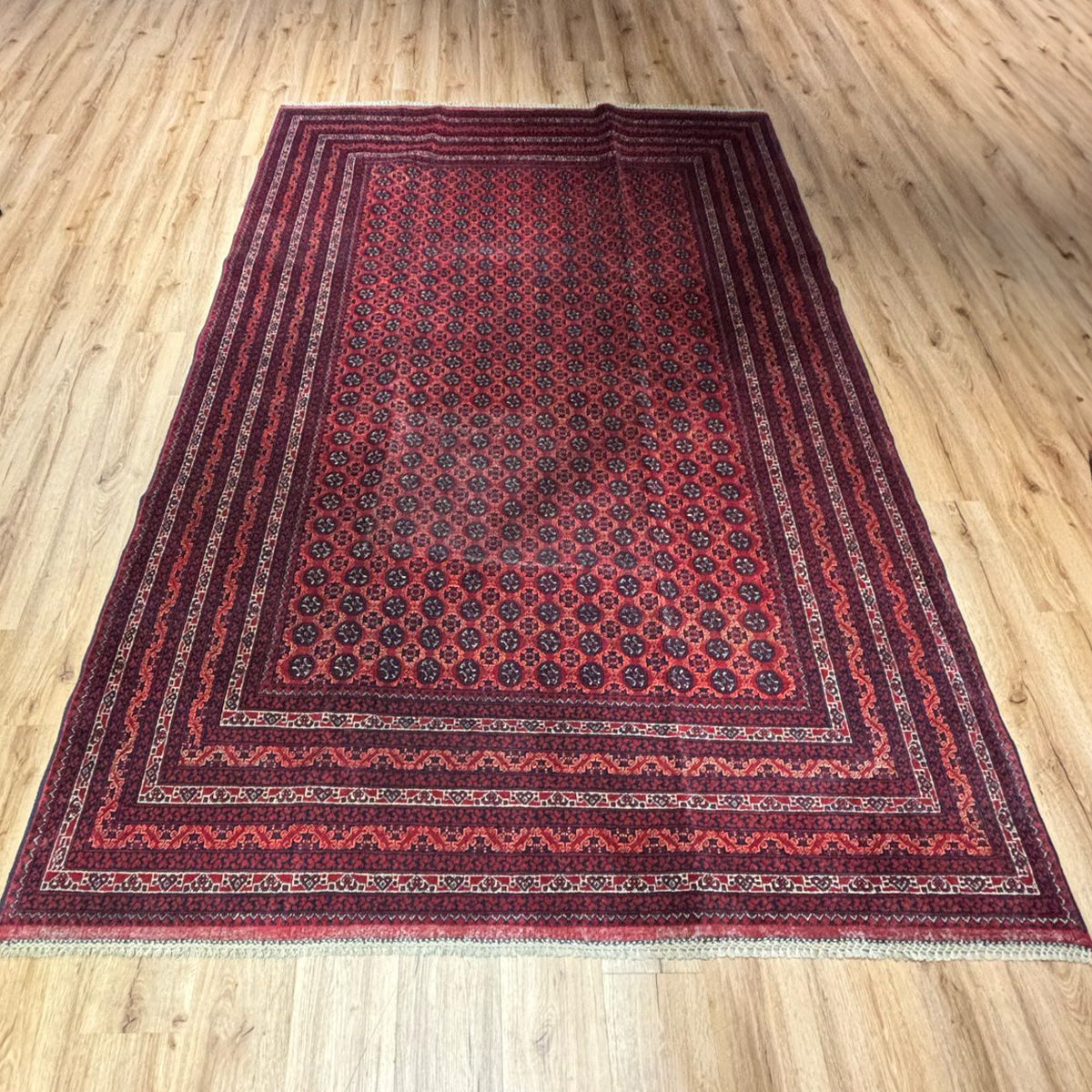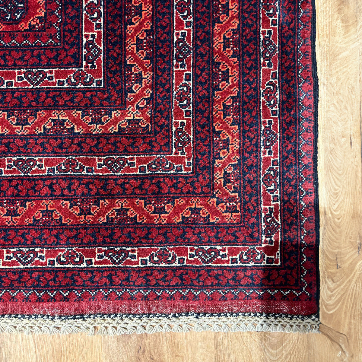 שטיחים אפגניים יפיפיים ויוקרתיים ברמת צפיפות גבוהה מאוד. הם נארגים באפגניסטן במלאכת אמן העוברת מדור לדור מאות ואלפי שנים. כל אחד מהם הינו יחיד מסוגו ונחשב ליצירת אמנות. השטיחים ארוגים מ-100% צמר טהור בצפיפות גבוהה במיוחד אשר מקנה להם עמידות לצד מראה מרהיב ומלא רושם. הם משלבים מסגרות חיצוניות ובתוכן פאטרן חזרתי של דוגמאות קטנות. הם מסתיימים בסיומת פרנזים באריגה שטוחה המספקת עוד עניין וצבע, ויוצרת משחק של שני סוגי אריגה – כאשר השטיח עצמו פלומתי ואילו סיומת הפרנזים שטוחה. השטיחים משלבים צבעי אדום, כחול וקרם, כאשר האדום הינו הצבע המרכזי בשטיח.
