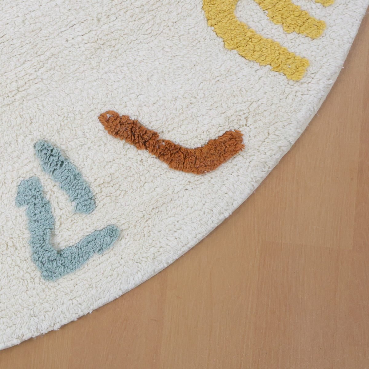 שטיח אלף בית קרם הוא שטיח עגול בעבודת יד מ־100% כותנה ממוחזרת, שמכניס לחדר הילדים גם עיצוב, גם רכות – וגם נגיעה של קסם לימודי.