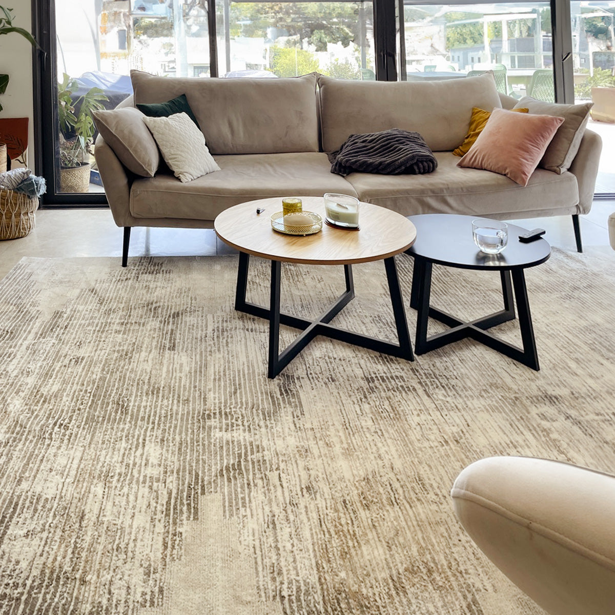 שטיח אבסטרקט המשלב דוגמא גיאומטרית מלאת עניין וצבעוניות מודרנית בגווני בז' ואפור. גווני השטיח מבטיחים להשתלב בהרמוניה לצד כל ריצוף וכל סגנון ריהוט ויתרמו ליצירת אווירה פסטורלית ורגועה.