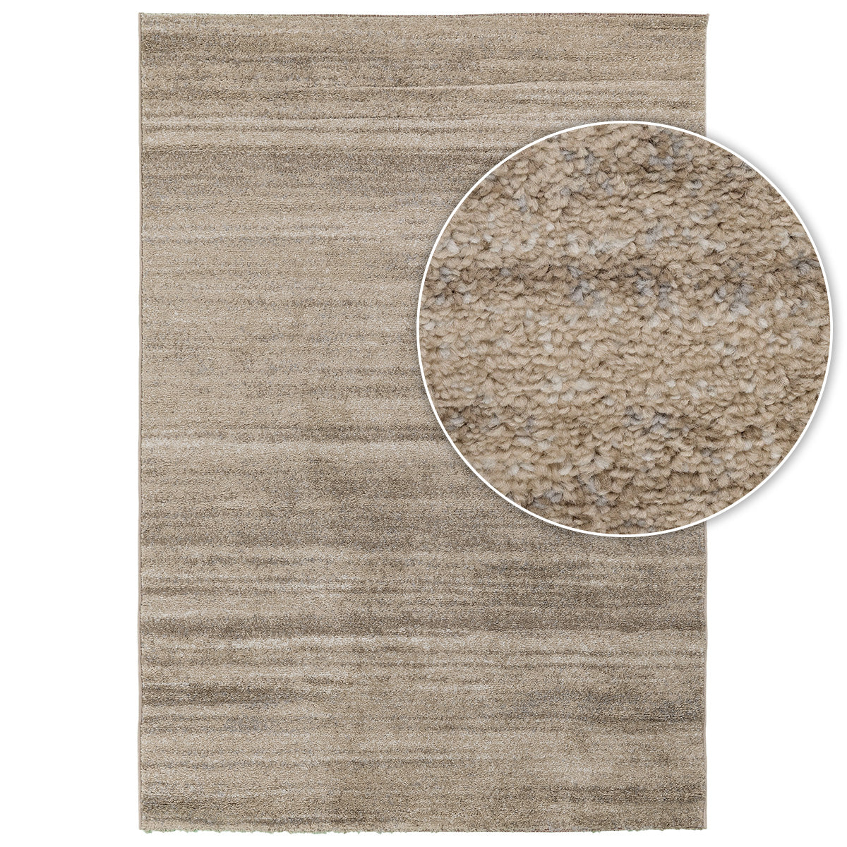 שטיח מודרני לסלון מדגם אנה מקולקציית Aura מבוסס על טקסטורת פסים אופקיים עדינה. העיצוב המופשט משלב גוונים חמימים של בז' וקרם המדמים שכבות של חול או סלע טבעי ויוצרים עומק ויזואלי מרגיע על הרצפה. זהו שטיח מעוצב שמוסיף חמימות מאופקת וסטייל נקי לבית מבלי להשתלט על העיצוב הקיים.
