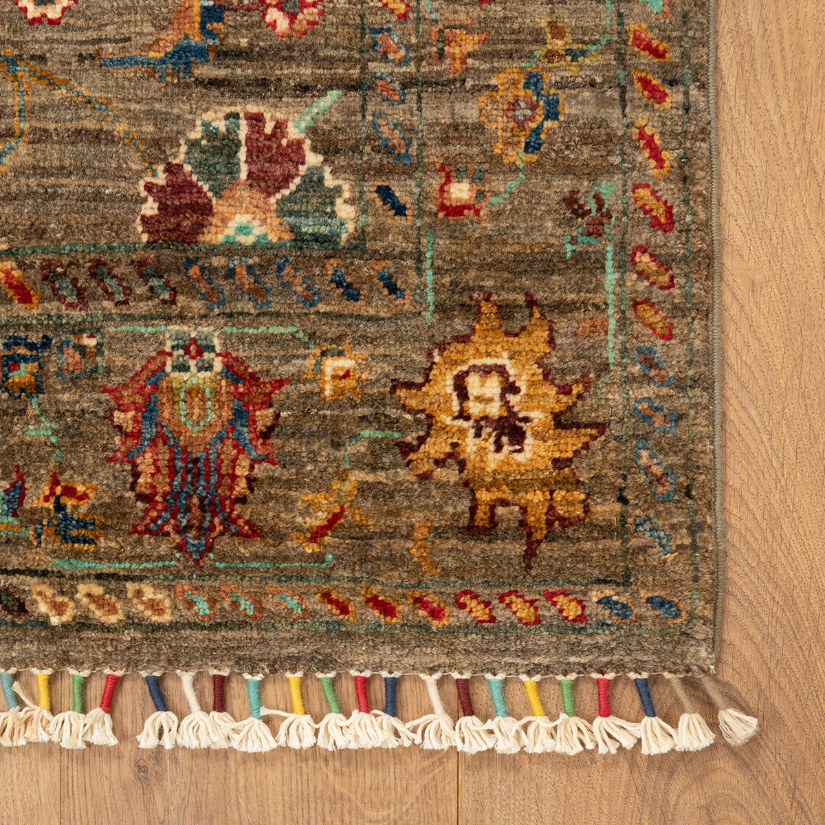 קולקציה: ארזו חומר: 100% צמר ארץ מקור: פרסי מאפיינים: אתני, פרסי, קלאסי, יחיד מסוגו, צמר, כפרי, עשוי מחומרים טבעיים צבע: אפור פרנזים: עם פרנזים צורה: ראנר טכניקת אריגה: עבודת יד