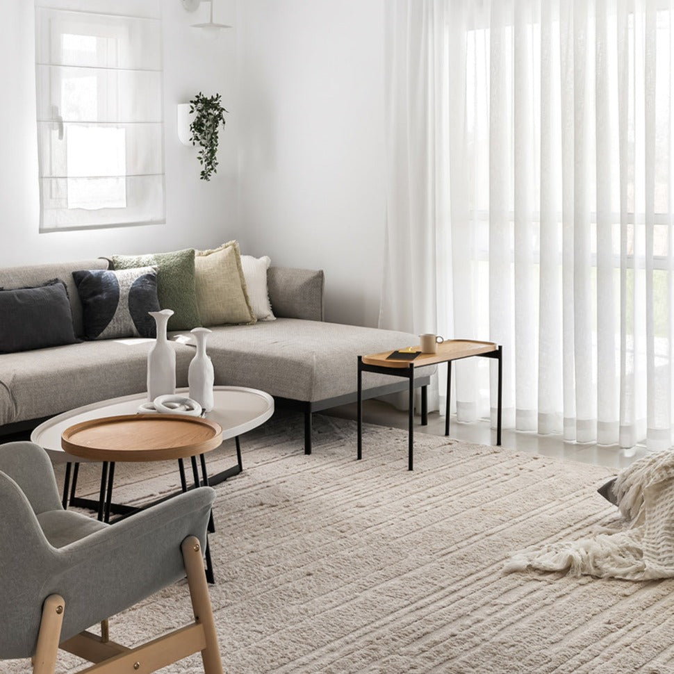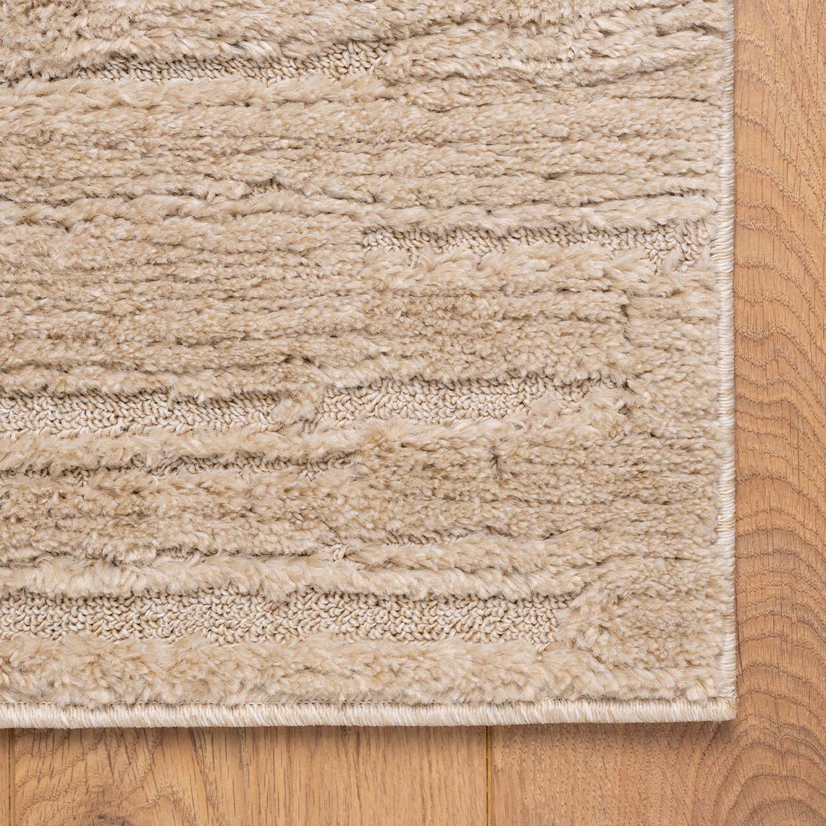שטיח בסגנון מרוקאי, רך ונעים למגע. מעוצב בגוון בז' מעודן ואלגנטי, נארג בשיטה ייחודית בשני גבהים, אשר מקנה לו טקסטורה תלת ממדית עשירה. סגנון השטיח מתאים למגוון חללים, כולל חדר השינה שם הוא יתרום לתחושה רגועה ופסטורלית.