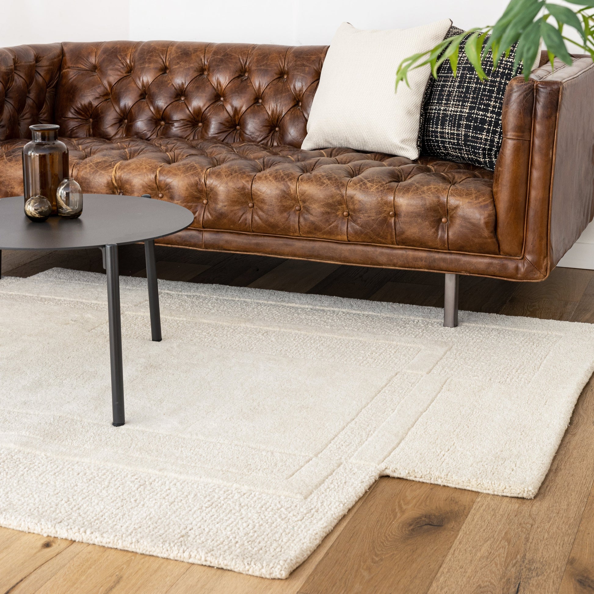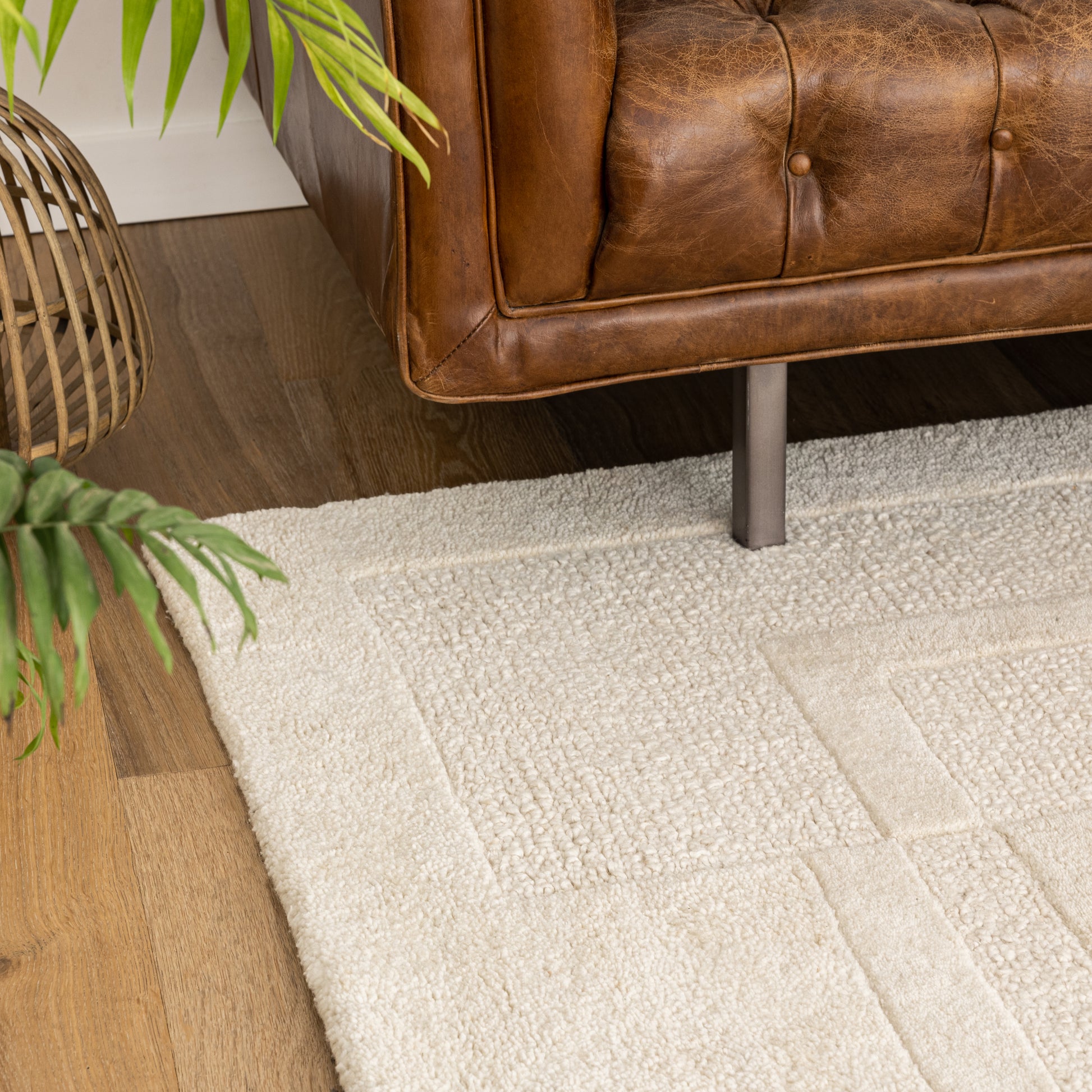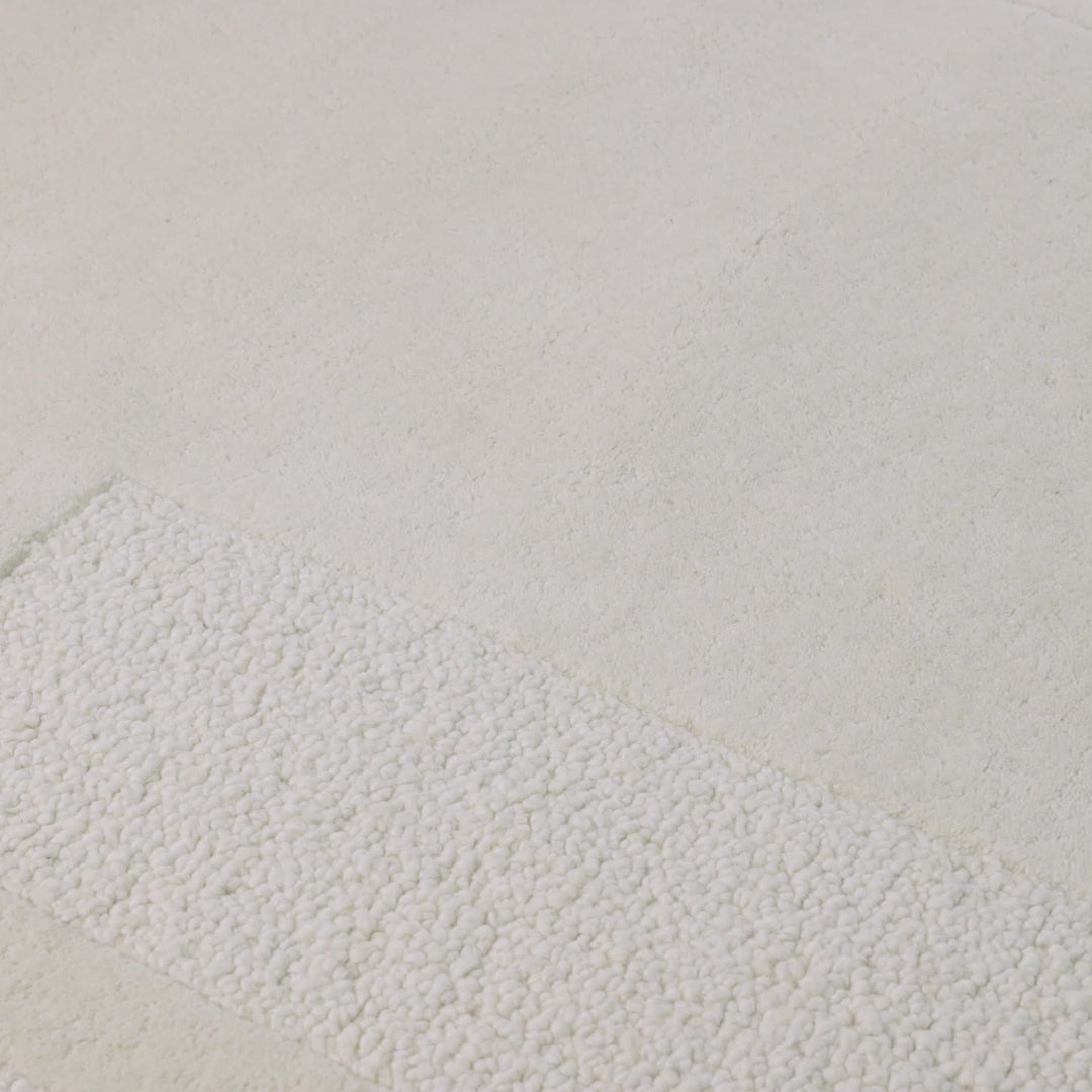 שטיח מרהיב שהוא התגלמות האלגנטיות והיוקרה, נארג מצמר בעבודת יד ומעוצב בגווני לבן ובז'. היצירה המעודנת הזו מתהדרת בטקסטורה תלת ממדית מהפנטת ובמסגרת עדינה, אשר מוסיפה עומק ותחכום לכל חלל. השטיח מתאים לבתים בסגנון מודרני ויוקרתי ולכל מי שמחפש נגיעה של אלגנטיות בחלל. השטיח מעוצב בחיתוך גיאומטרי א-סימטרי, בעל מראה מתוחכם ובלתי שגרתי.