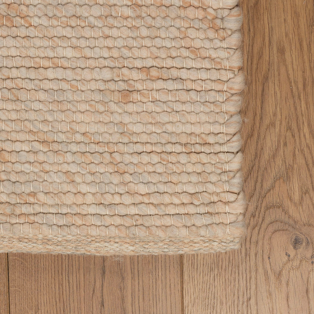 במבט מרחוק מתקבל גוון טבעי, רך ומאוורר, ובמבט מקרוב נחשפת הטקסטורה הארוגה שמוסיפה לשטיח עומק, חמימות ותחושת עבודת יד אותנטית.