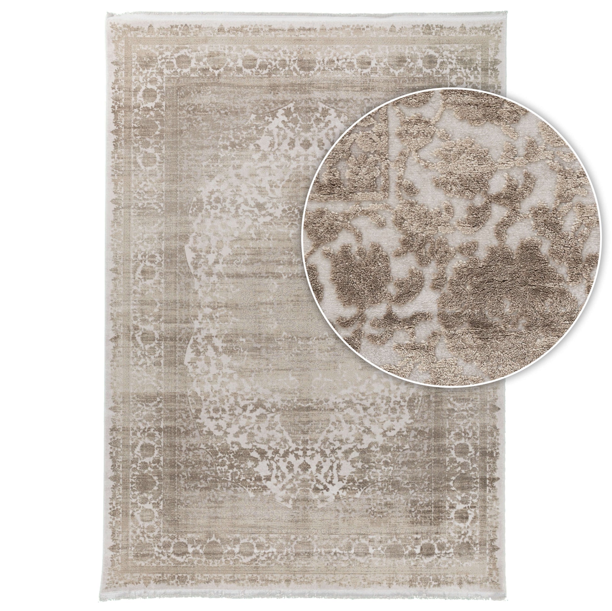 שטיח אמיליה הוא שטיח וינטג' קלאסי בצבעוניות עדינה של גווני בז' וקרם. השטיח מעוטר במסגרת פרחים עדינה ובמרכז מדליון מרשים. לשטיח אמיליה סיומת פרנזים עדינה. השטיח מיוצר ברמת צפיפות גבוהה המקנה לו חוזק ויופי רב, מתאים במיוחד לבתים בעיצוב קלאסי, וגם לעיצוב וינטאג' מוקפד. שילוב של שטיח אמיליה בעיצוב מודרני, יכניס חמימות לחלל וטוויסט עיצובי.