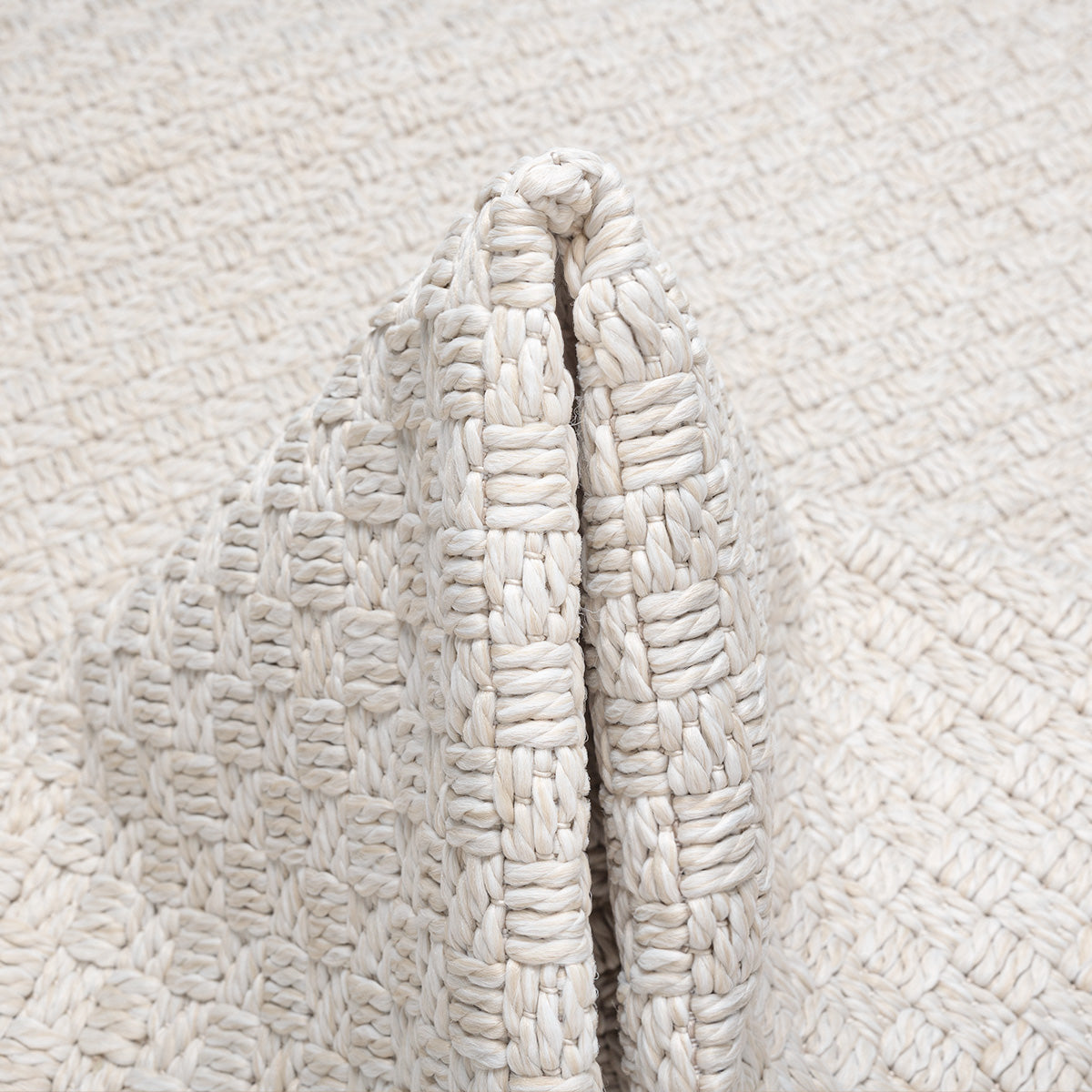 שטיח בסגנון מודרני, בעל מרקם רך ונעים. מעוצב בדוגמא נקייה ומדויקת בצבעוניות עדינה בגוון קרם.