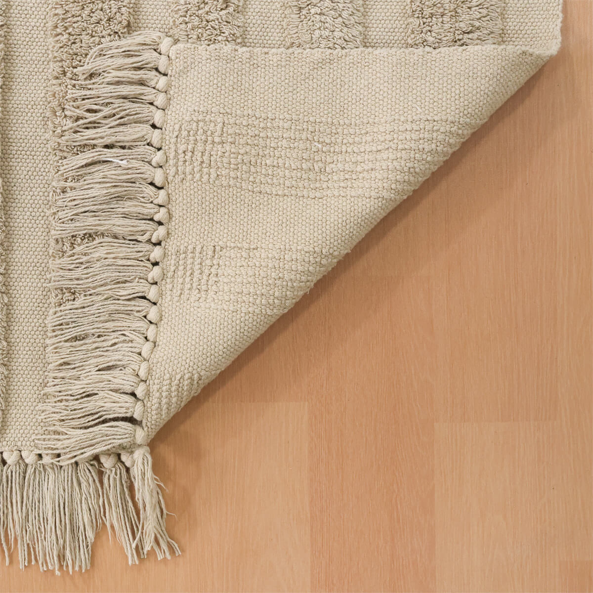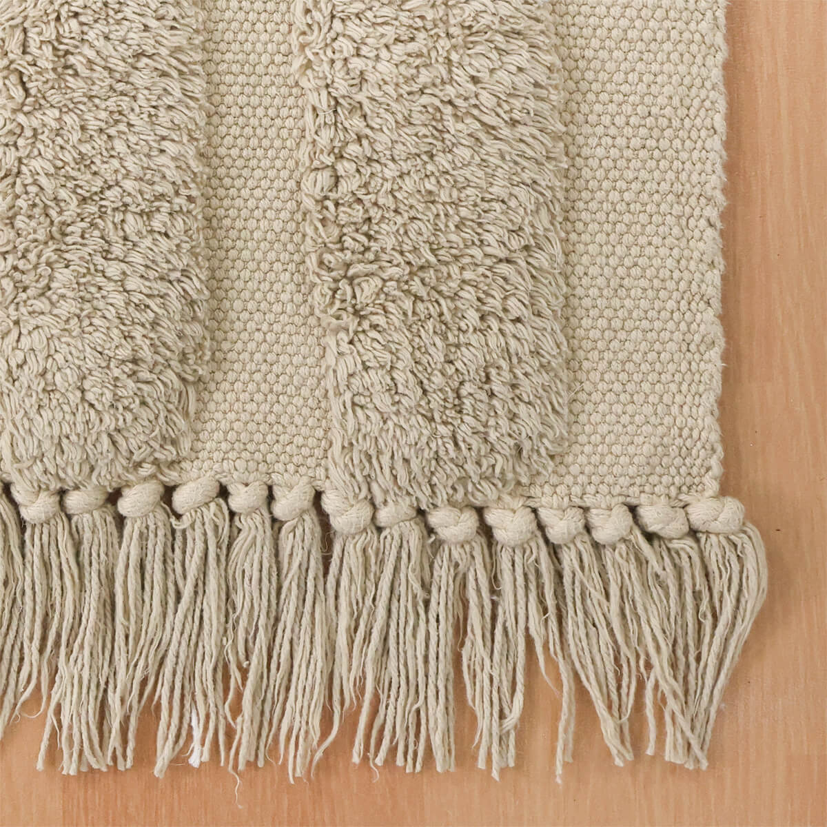 שטיח עוצר נשימה המשלב דוגמת קשתות מופשטת בגווני קרם. השטיח נארג בצורה ייחודית אשר יוצרת טקסטורה ייחודית המשלבת מספר גבהים. הצבעוניות העדינה מאפשרת לשלבו לצד מגוון סגנונות עיצוב, מהווה תוספת מושלמת לסגנון הבוהו שיק והמראה הטבעי. השטיח נארג מ-100% כותנה איכותית, רכה ונעימה למגע. ניתן לניקוי במכונת הכביסה