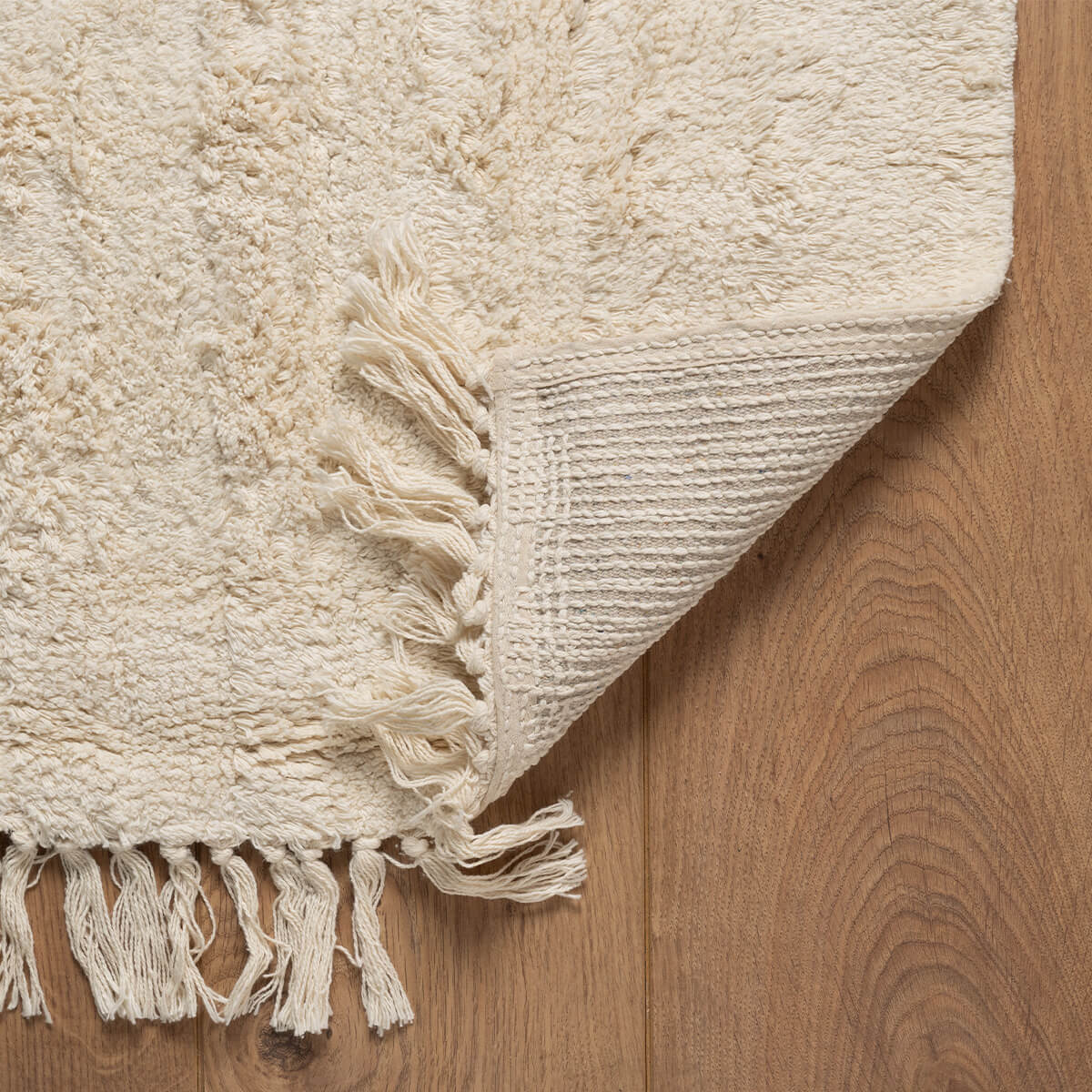 שטיח עוצר נשימה המשלב דוגמת קשתות מופשטת בגווני קרם. השטיח נארג בצורה ייחודית אשר יוצרת טקסטורה ייחודית המשלבת מספר גבהים. הצבעוניות העדינה מאפשרת לשלבו לצד מגוון סגנונות עיצוב, מהווה תוספת מושלמת לסגנון הבוהו שיק והמראה הטבעי. השטיח נארג מ-100% כותנה איכותית, רכה ונעימה למגע. ניתן לניקוי במכונת הכביסה. מגיע בצורת ראנר המתאימה למגוון חללים צרים וארוכים, מסדרון, חלל הכניסה ועוד.