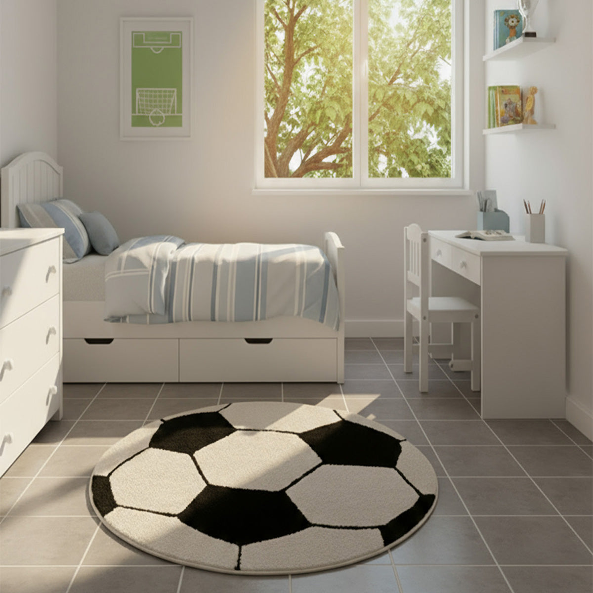 מושלם כשטיח לחדר ילדים, או כפריט נוי לחובבי כדורגל.