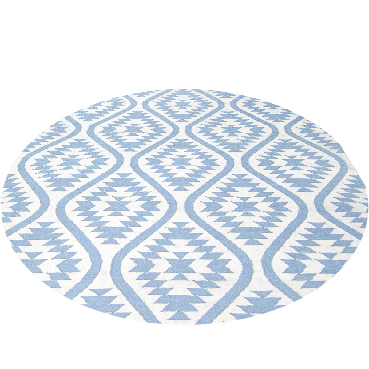 שטיח קילים הדס 11 תכלת/לבן עגול KILIM