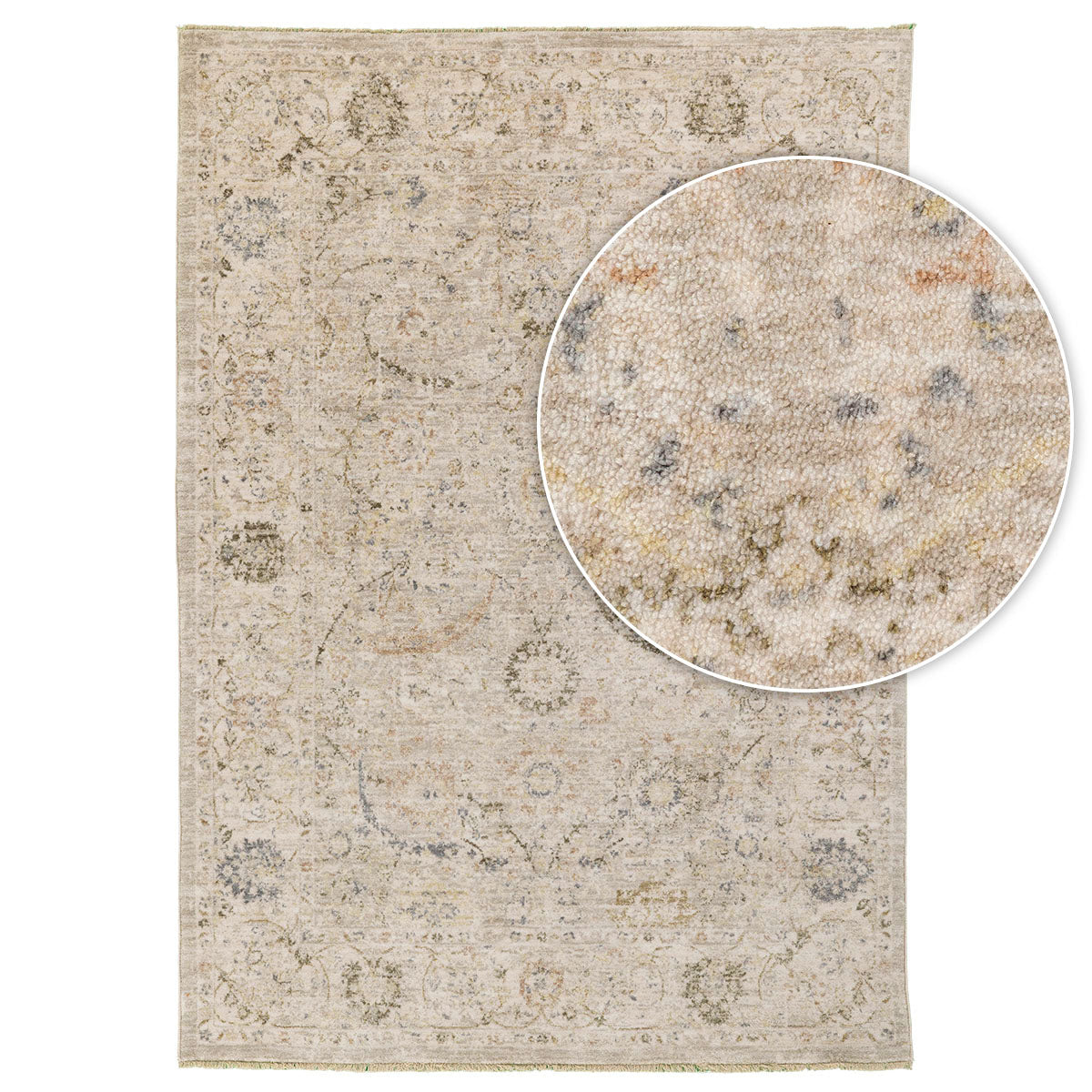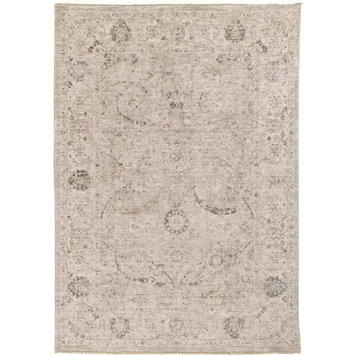 שטיח אייקוניק, שטיח בסגנון וינטאג' עם עיטורים קלאסיים ואלגנטיים בגווני אפור בהיר ונגיעות בז' עדינות. דוגמת העיטורים העדינה מעניקה לשטיח מראה עמוק, מלא אופי, שנראה כאילו סיפור חי בו שנים. השטיח משתלב נפלא בחללים בסגנון מודרני, קלאסי או כפרי, ומכניס נוכחות שקטה ומרשימה.