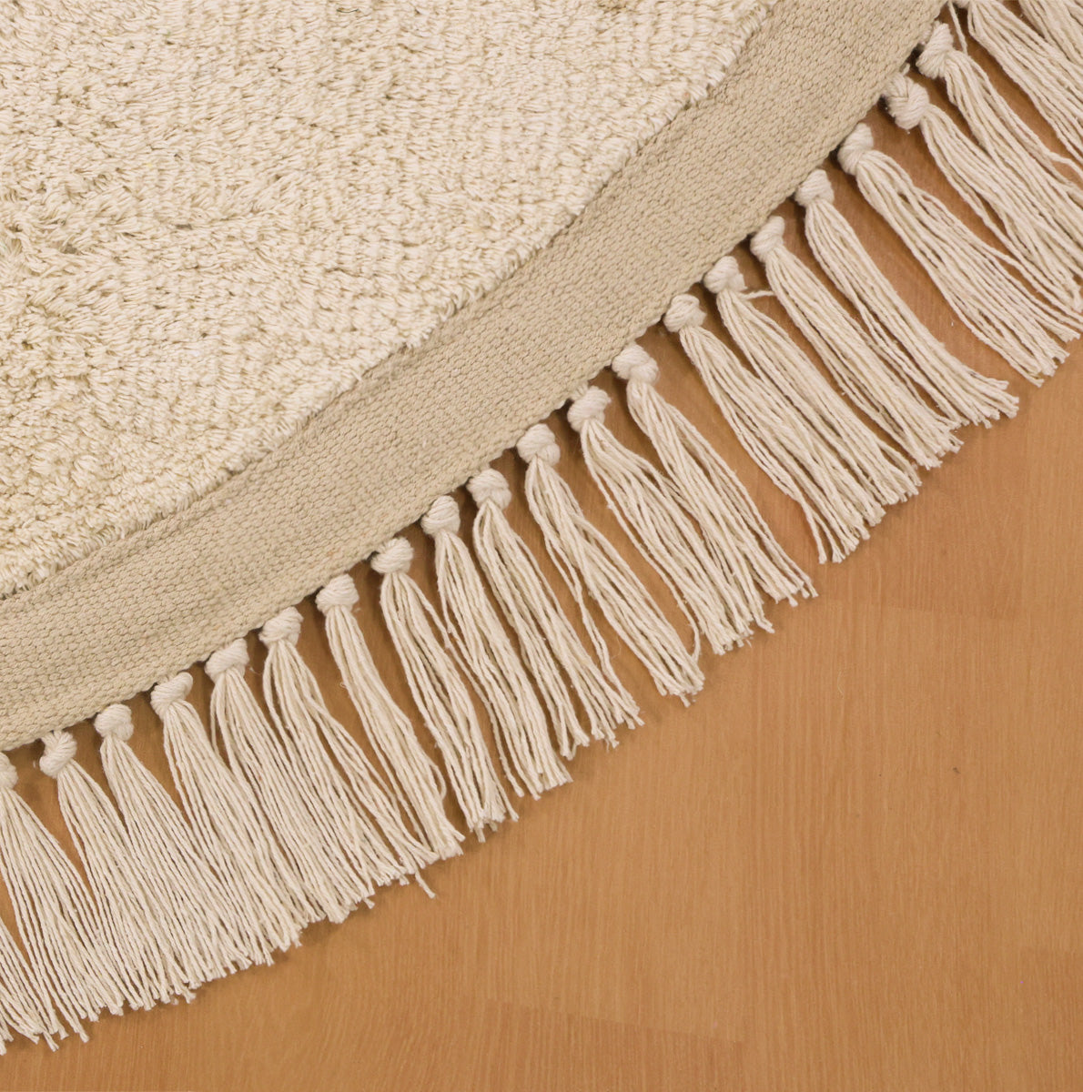 שטיח יפיפה כביס ומתאים לניקוי באמצעות מכונת הכביסה וכן לשטיפה ידנית במים וסבון. מהווה פתרון מושלם לבתים עם ילדים קטנים, בעלי חיים וכל מי שרוצה לשמור על ניקיון השטיח ללא מאמץ. מעוטר בדוגמת נקודות עדינה היוצרת מראה קסום. השטיח מיוצר מ-100% כותנה רכה ונעימה, המאפשרת מגע במים. ניתן לניקוי במכונת הכביסה - על מנת להכניס את השטיח למכונת הכביסה יש לקפלו בצורה סימטרית מספר קיפולים כך שיכנס למכונת הכביסה. שימו לב: שטיח עד גודל 120/170 ס"מ מתאים למכונת כביסה ביתית 8 ק"ג ובטמפרטורה של עד 30 מעלות, ללא סחיטה ולא במייבש. שימו לב ♥ לשטיח זה מומלץ לרכוש משטח נגד החלקה שישמור על השטיח במקומו ובכך יפחית את הסיכון להחליק