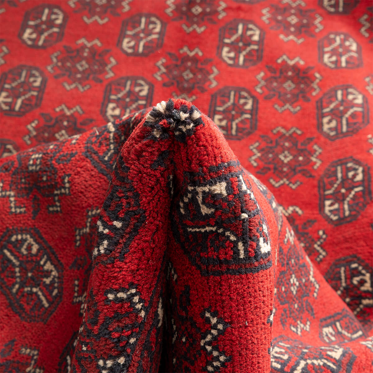 שטיחים בעלי מראה אותנטי מלאים בעושר וניחוחות של תרבות רחוקה. השטיחים מיוצרים בעבודת יד מסורתית ועשויים 100% צמר איכותי, מאופיינים בצבע אדום עז ומעוטרים בדוגמה המזכירה בצורתה רגל פיל או דוגמה לשטיחי בוכרה המסורתיים. השטיחים האלו יכניסו רושם ויוקרה לכל חלל ויספקו חותמת של איכות לעיצוב כולו.