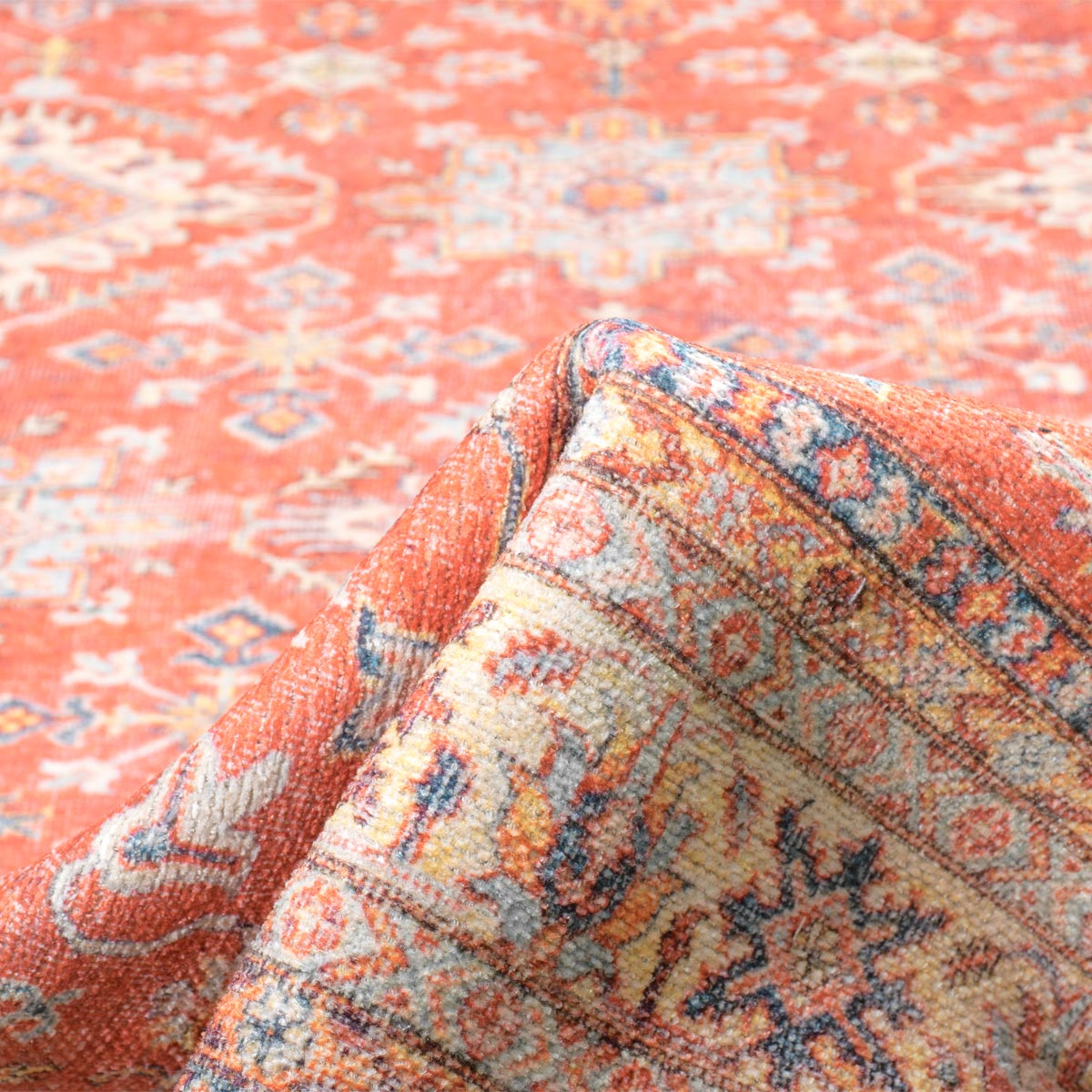 הבחירה המושלמת לחובבי המראה האותנטי. שטיח בדוגמא קלאסית בעל צורה עגולה היוצרת תחושה זורמת ורכה. השטיח מיוצר בטכנולוגיית הדפסה ייחודית, המקנה לו עובי דק ומשקל קל במיוחד. היעדר הפלומה הופך אותו לבחירה אידיאלית עבור הסובלים מאלרגיה לאבק.