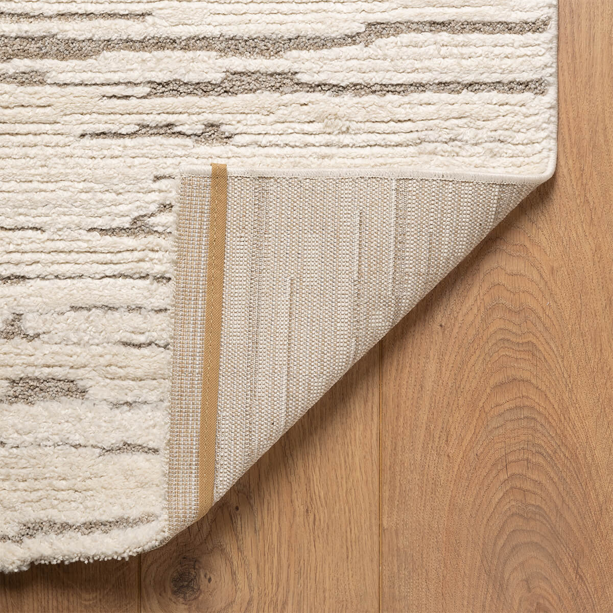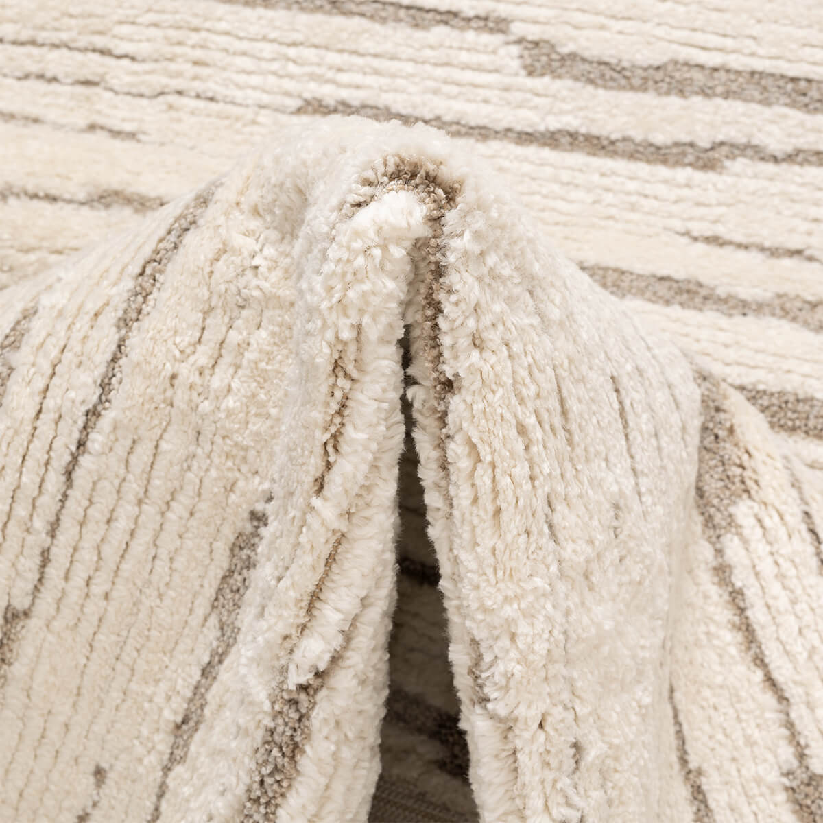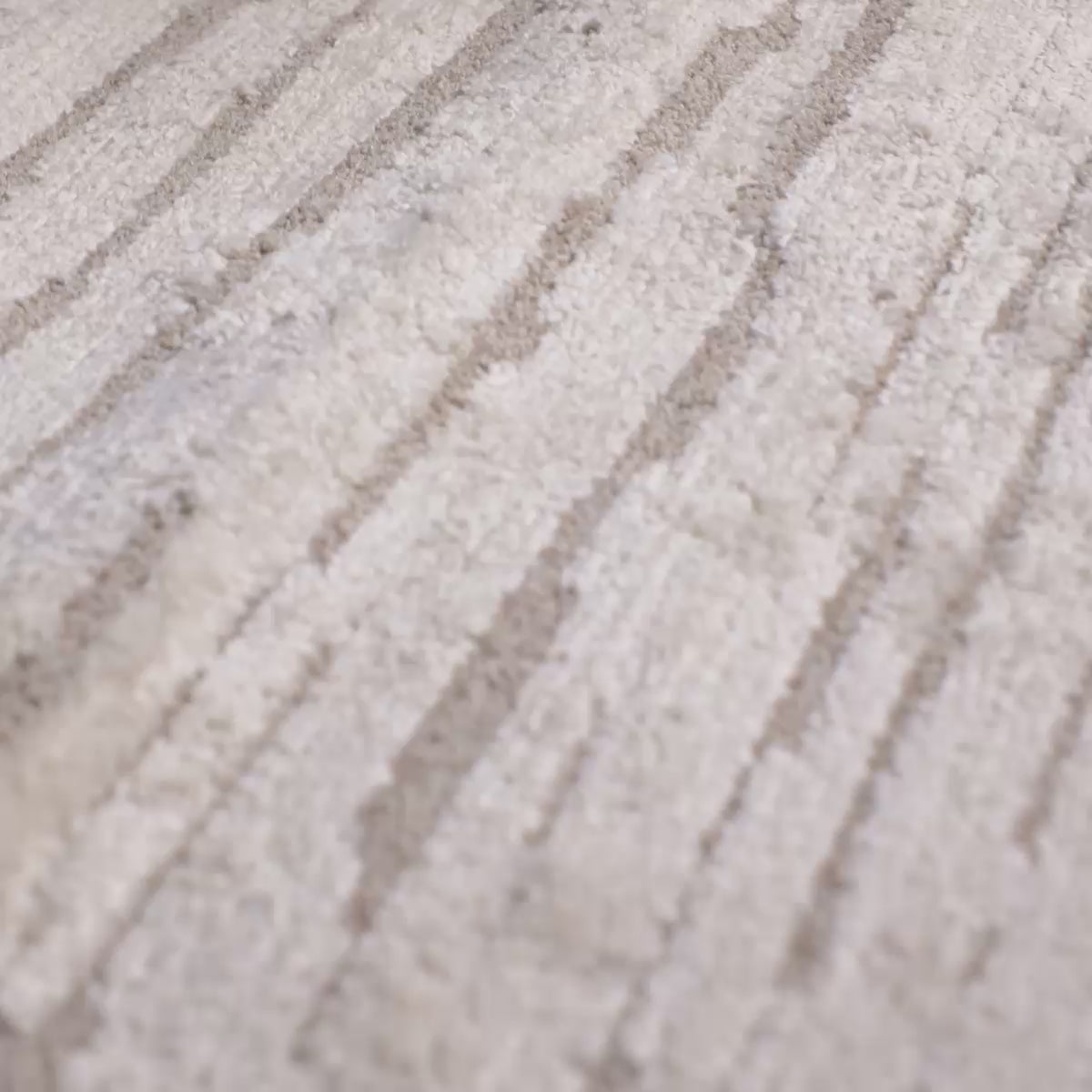 שטיח אווירה, רך ונעים למגע. מעוצב בגווני קרם וחום בהיר שיוצרים יחד מראה מעודן ואלגנטי, נארג בשיטה ייחודית בשני גבהים, אשר מקנה לו טקסטורה תלת ממדית עשירה. סגנון השטיח מתאים למגוון חללים, כולל חדר השינה שם הוא יתרום לתחושה רגועה ופסטורלית.