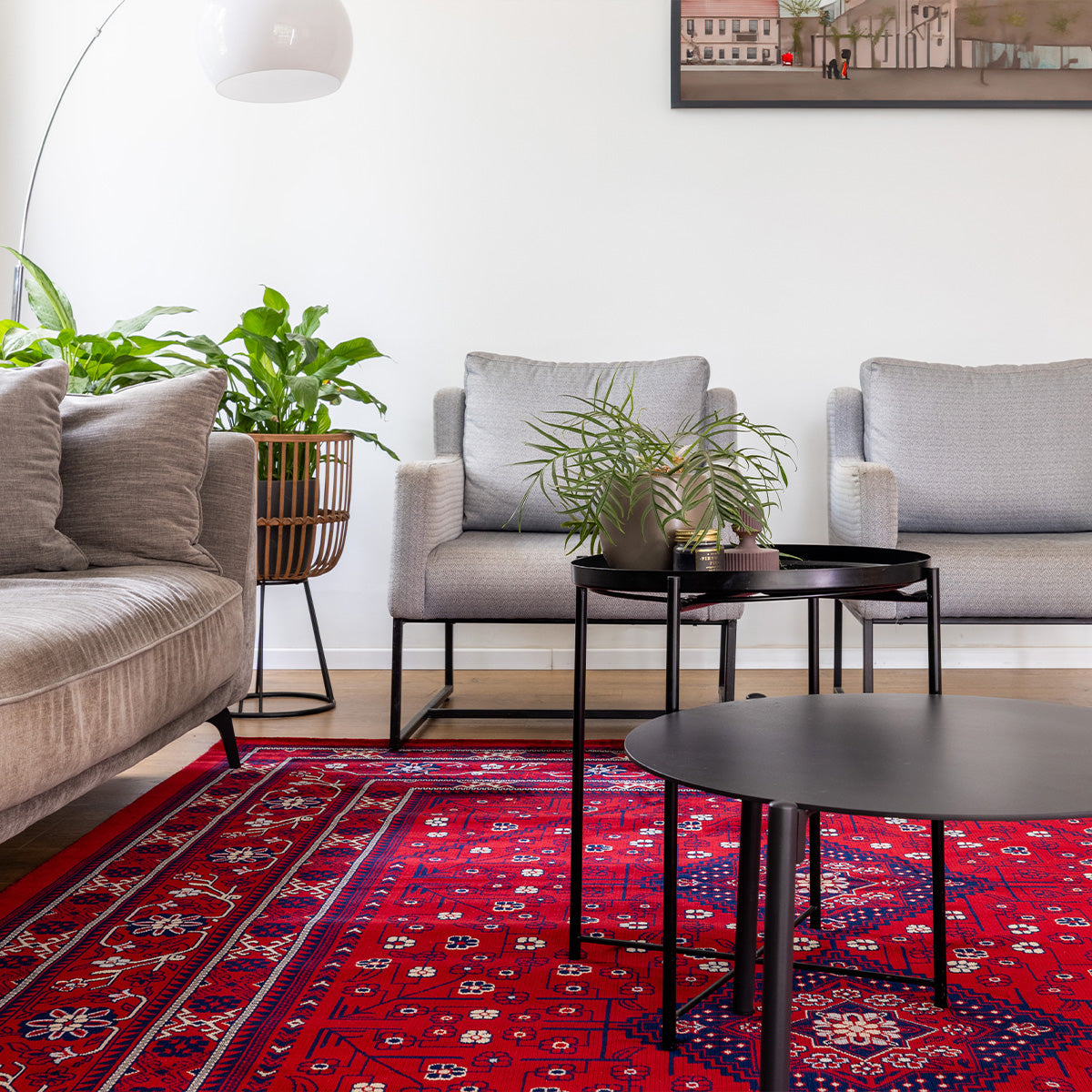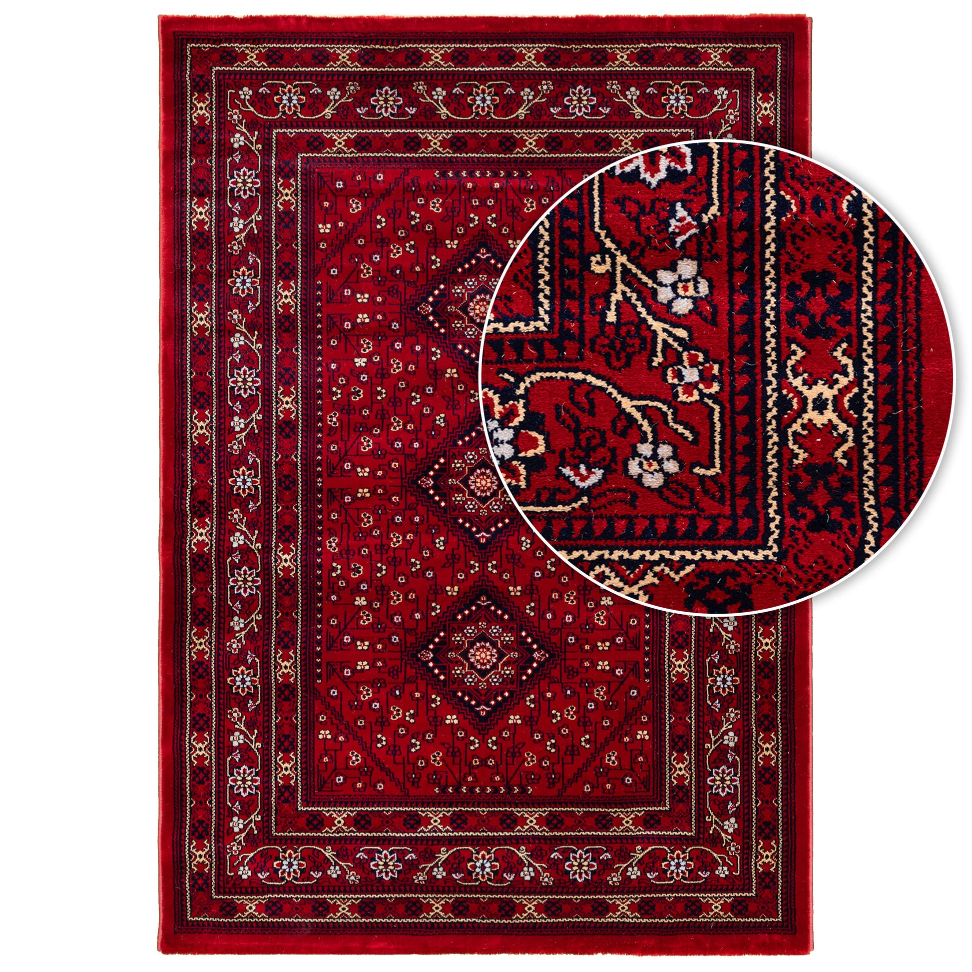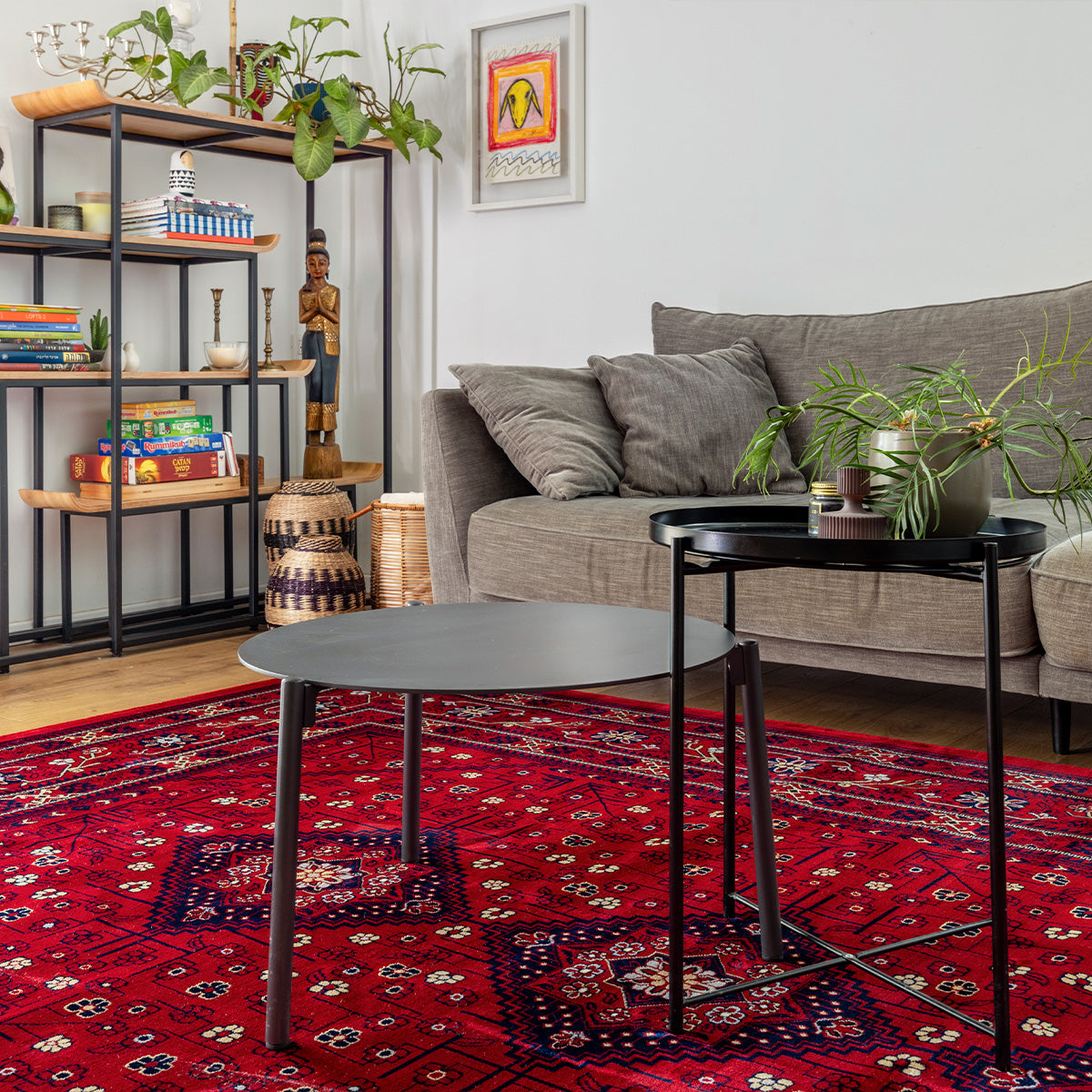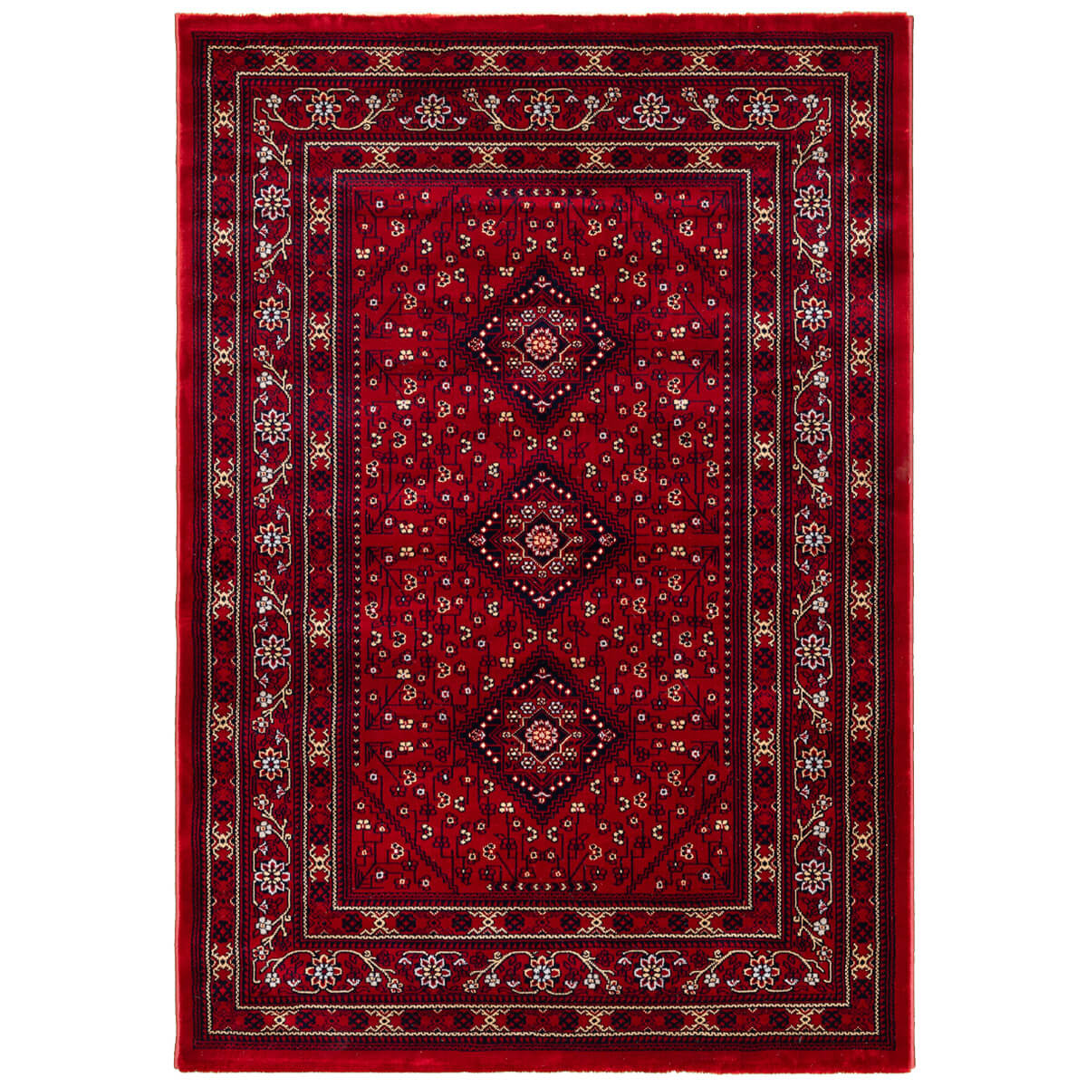 שטיח קלאסי בסגנון שטיחי בלוץ' מעוטר ב3 מסגרות מעוטרות במוטיבים מהצומח ובמרכז 3 מעויינים וסביבם עיטורי פרחים עדיני בגווני בורדו, שחור ונגיעות של אפור. שטיח לוריאן הוא שטיח מכונה שמיוצר ברמת צפיפות גבוהה המקנה לו חוזק ויופי רב. השטיח מתאים במיוחד לבתים בעיצוב קלאסי, וגם לעיצוב וינטאג' מוקפד. שילוב של שטיח פירוז בעיצוב מודרני, יכניס חמימות לחלל וטוויסט עיצובי.
