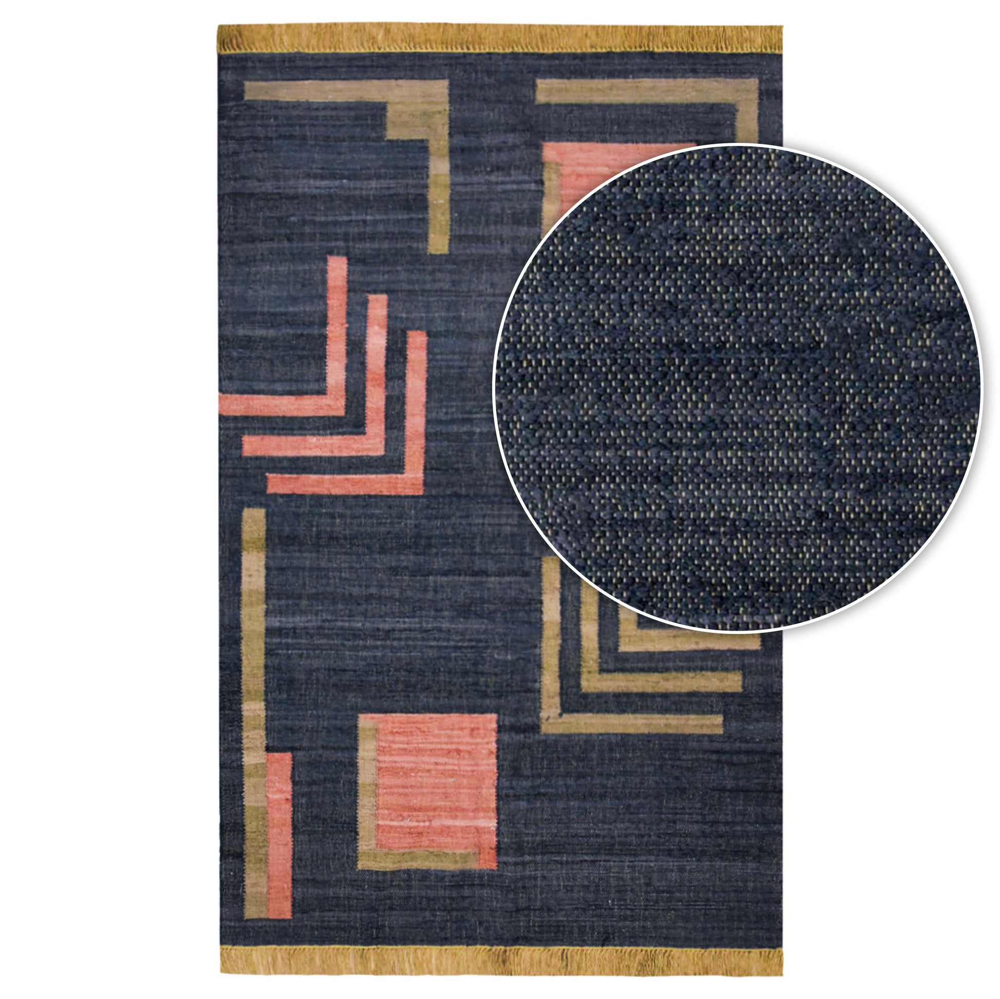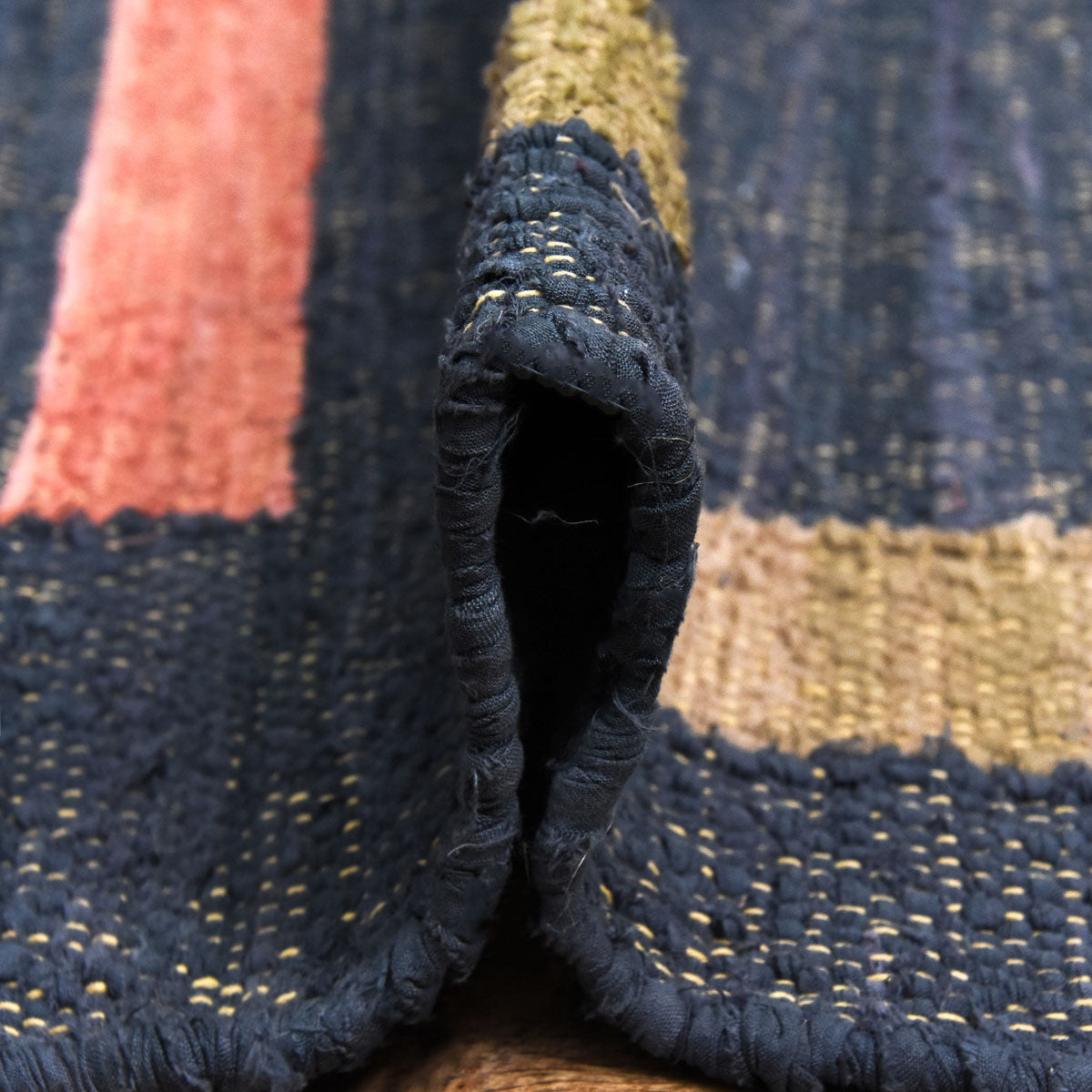 לונה אהובתי! שטיח כותנה יפיפייה הנארג בעבודת יד מבדי כותנה ממוחזרים ההופכים אותו לשטיח בר-קיימא מכותנה איכותית. השטיח כביס ומתאים לניקוי באמצעות מכונת הכביסה וכן לשטיפה ידנית במים וסבון. בעל מרקם רך שיכניס תחושה נעימה לכל חדר בבית, מחדר הילדים ועד חדר השינה. מעוצב בדוגמא גיאומטרית מתוחכמת ואוורירית המשלבת גווני ורוד עדינים על גבי רקע כחול.