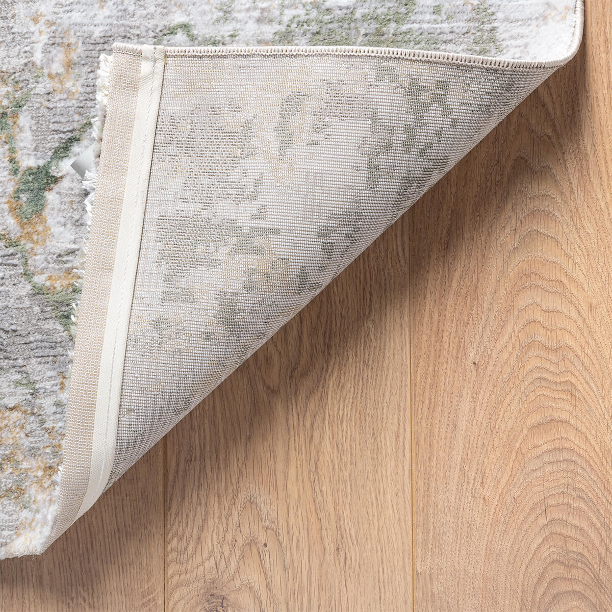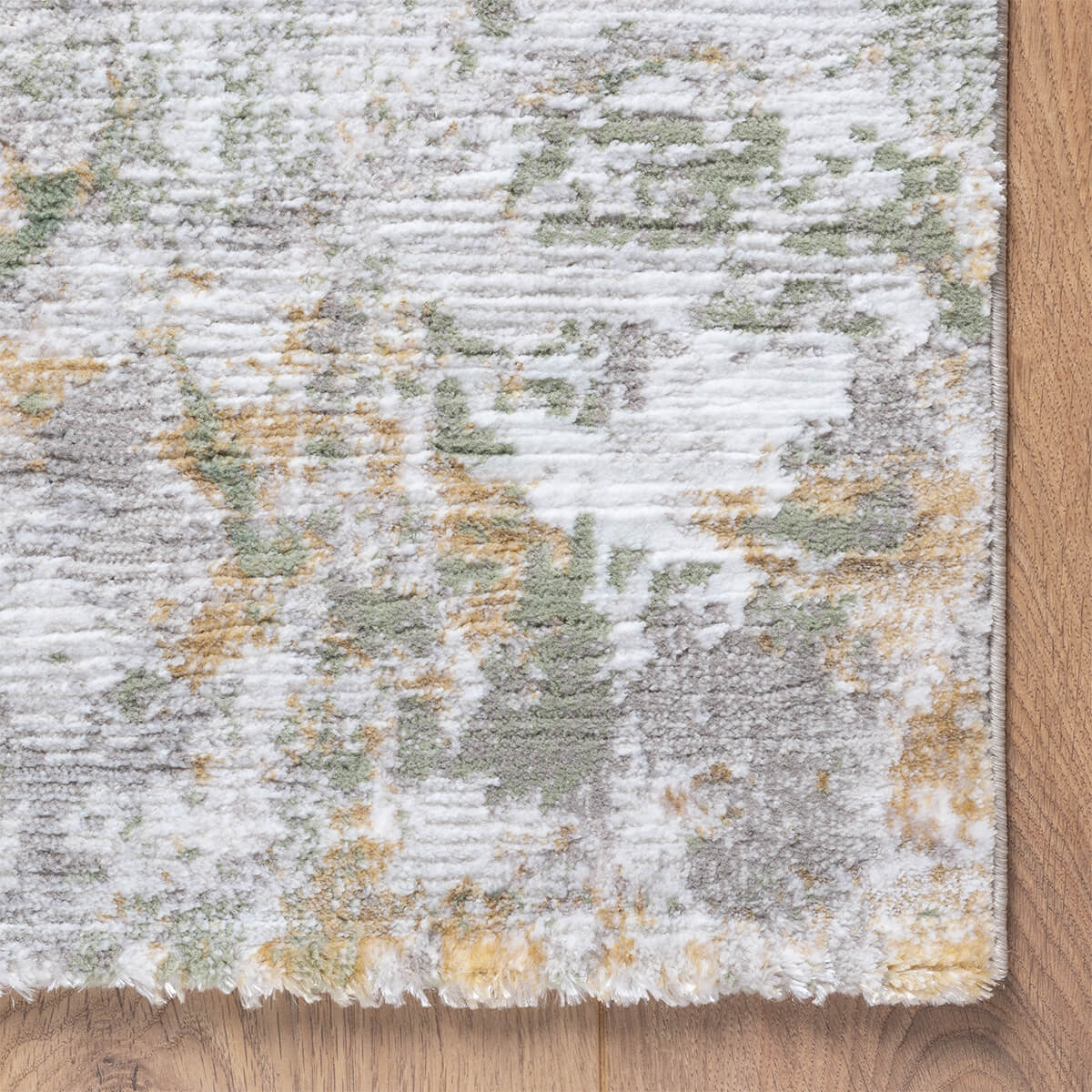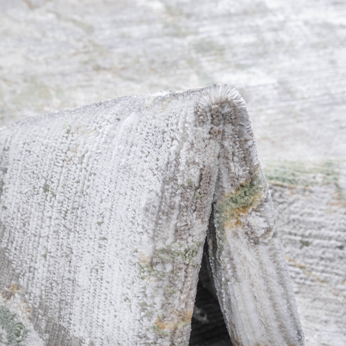 שטיח מודרני בסגנון אבסטרקט, בעל מרקם רך ונעים. מעוצב בצבעוניות מעודנת המשלבת גווני קרם וירוק, לצד דוגמא מופשטת בסגנון אמנותי. השטיח נארג בשיטה ייחודית המספקת טקסטורה תלת ממדית מרשימה