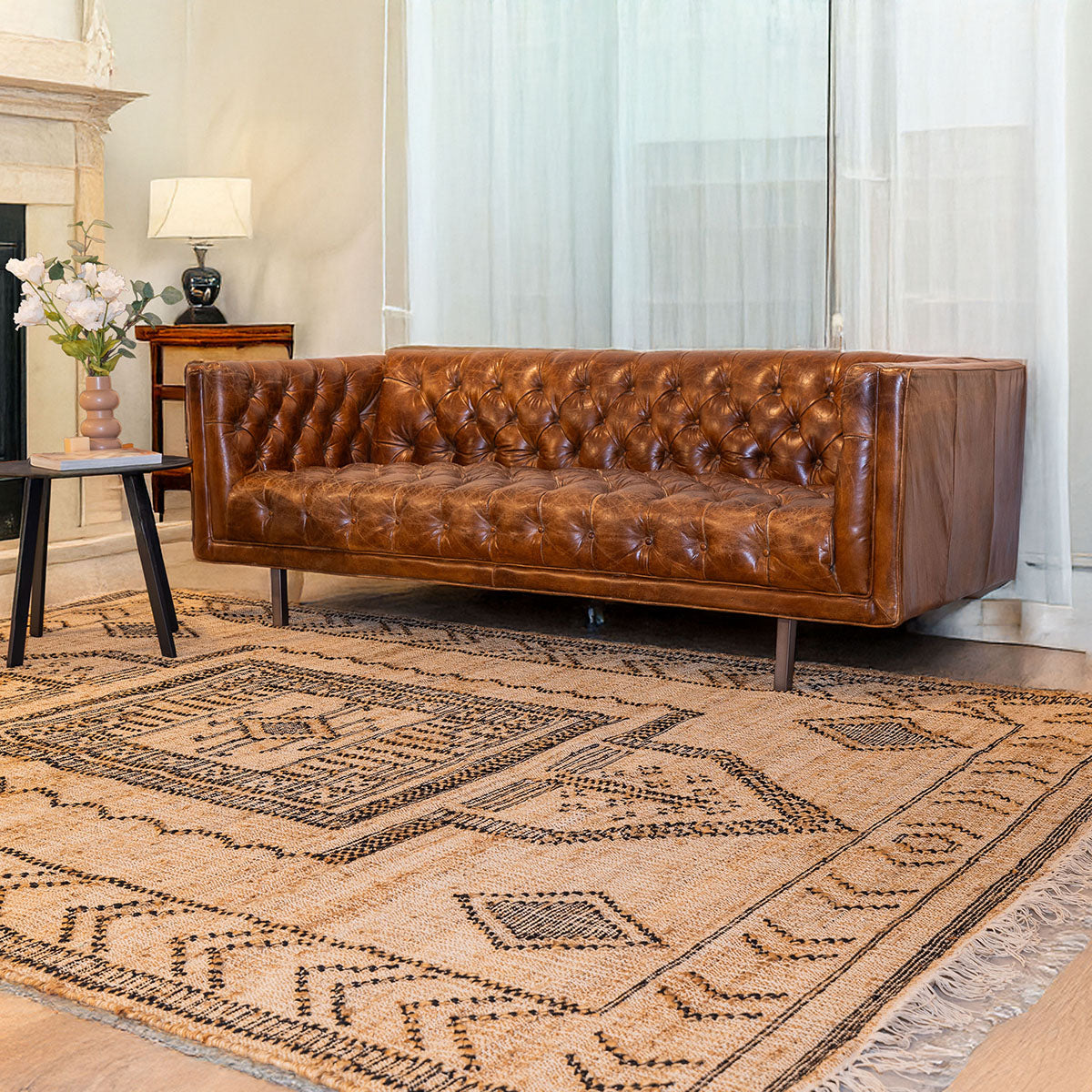 שטיח חבל טבעי המיוצר בעבודת יד איכותית, מעוצב בסגנון המשלב את הטוב שבכל העולמות: מצד אחד המראה הטבעי הנחשק, מצד שני דוגמא גיאומטרית בסגנון אותנטי לצד צבעוניות חמימה. השטיח מעוטר בסיומת פרנזים המקנה לשטיח מראה עשיר.