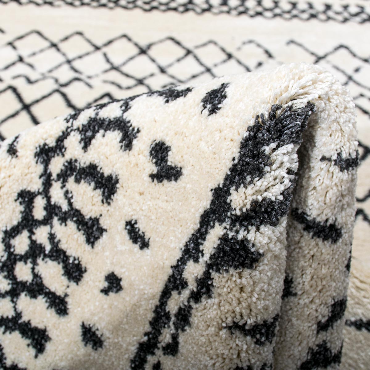שטיח בסגנון מרוקאי, בעיצוב עוצר נשימה. מעוטר בדוגמא גיאומטרית עשירה בפרטים בסגנון אתני. מעוצב בצבעוניות מונוכרומטית של גווני קרם ושחור המאפשרים להתאים אותו למגוון חללים וסגנונות עיצוב. משתלב נהדר בחללים בסגנון סקנדינבי ובוהו – שיק. דוגמת השטיח משלבת טאצ' מעט מיושן, המספק מראה מחוספס ומלא אופי. בעל צורה עגולה התורמת לתחושת הזרימה בחלל ומשתלבת במגוון אזורים בבית