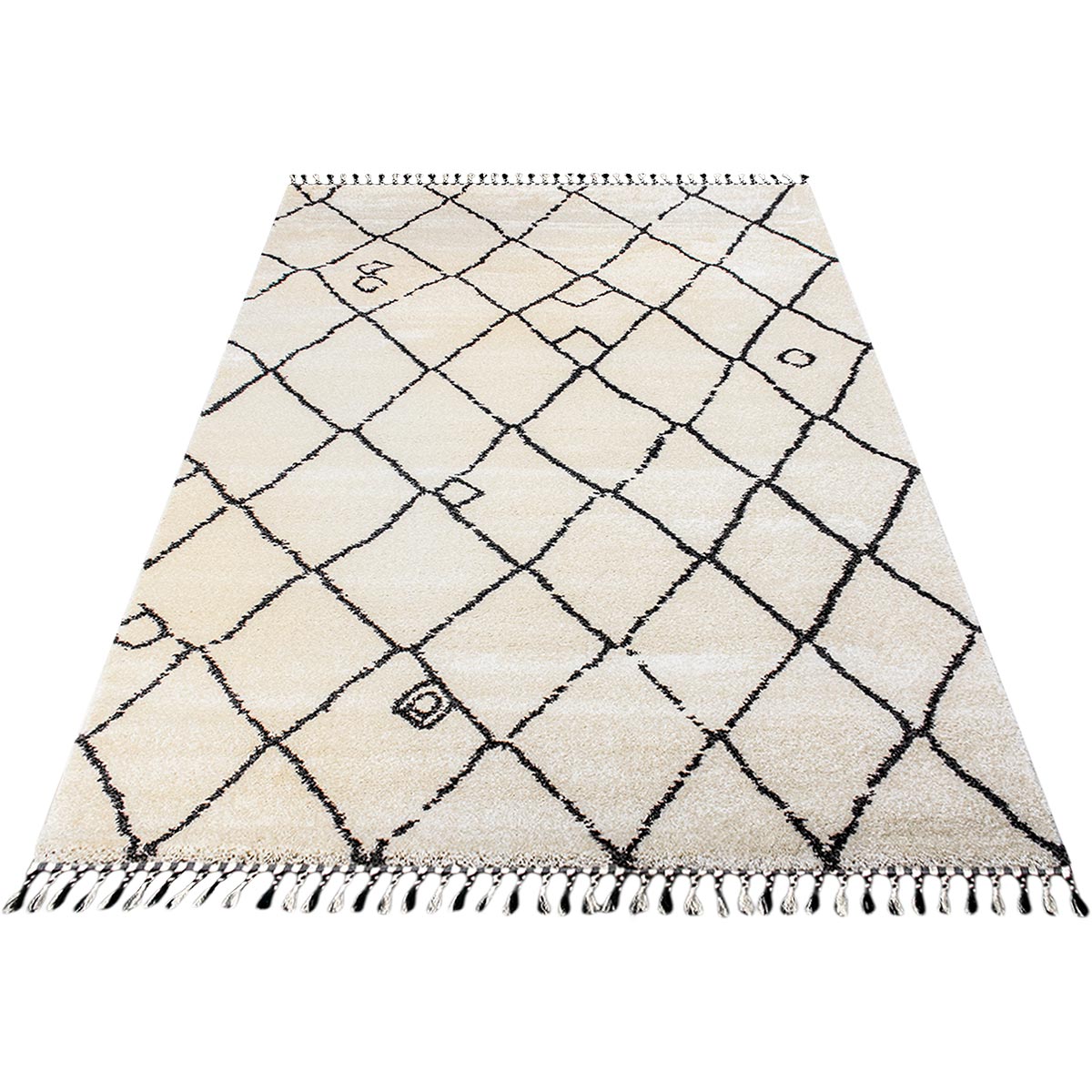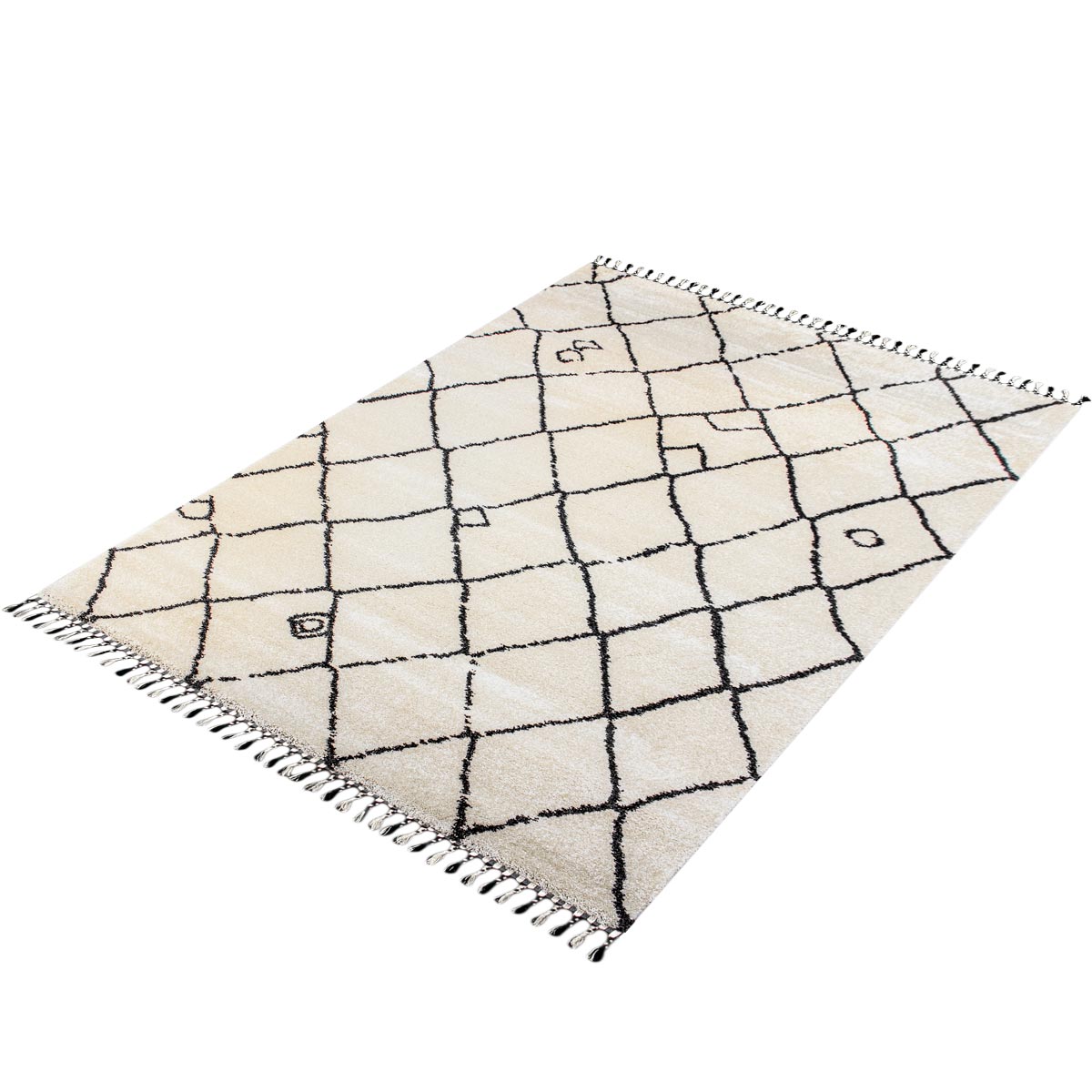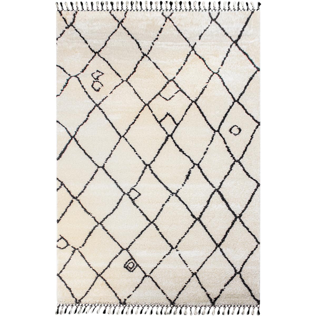 שטיח מרקש 06 קרם/שחור עם פרנזים | משלוחים חינם, השטיח האדום