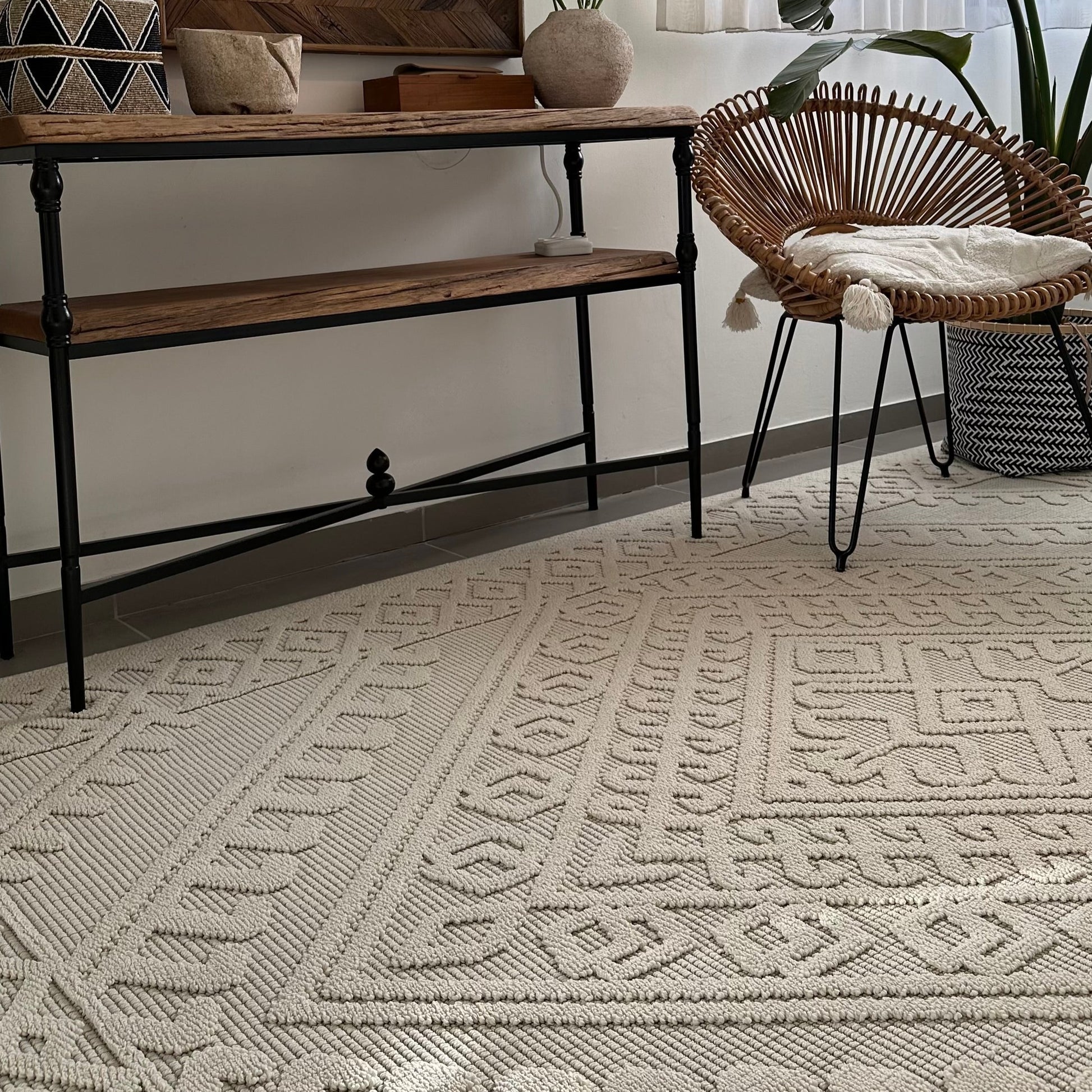 מעוצב בגוון קרם מעודנים ואלגנטיים. השטיח נארג בשיטה ייחודית בשני גבהים, אשר מקנה לו טקסטורה תלת ממדית עשירה. בעל מרקם רך ונעים למגע. סגנון השטיח מתאים למגוון חללים, כולל חדר השינה שם הוא יתרום לתחושה רגועה ופסטורלית.