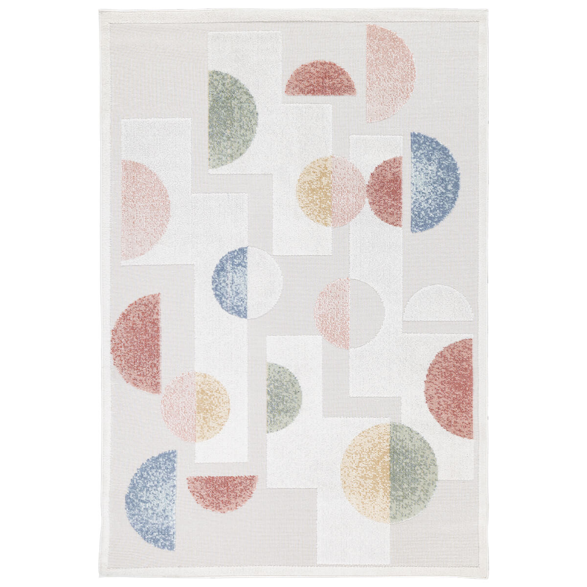 שטיח אווירה בעיצוב בלתי נשכח. מעוטר בדוגמא גיאומטרית מרהיבה המשלבת עיגולים יפיפיים בשלל צבעים. הדוגמא האוורירית של השטיח מאפשרת להוסיף צבע ועניין לכל חלל מבלי לייצר מראה עמוס. מתאים גם כשטיח חוץ, בגינה או במרפסת.