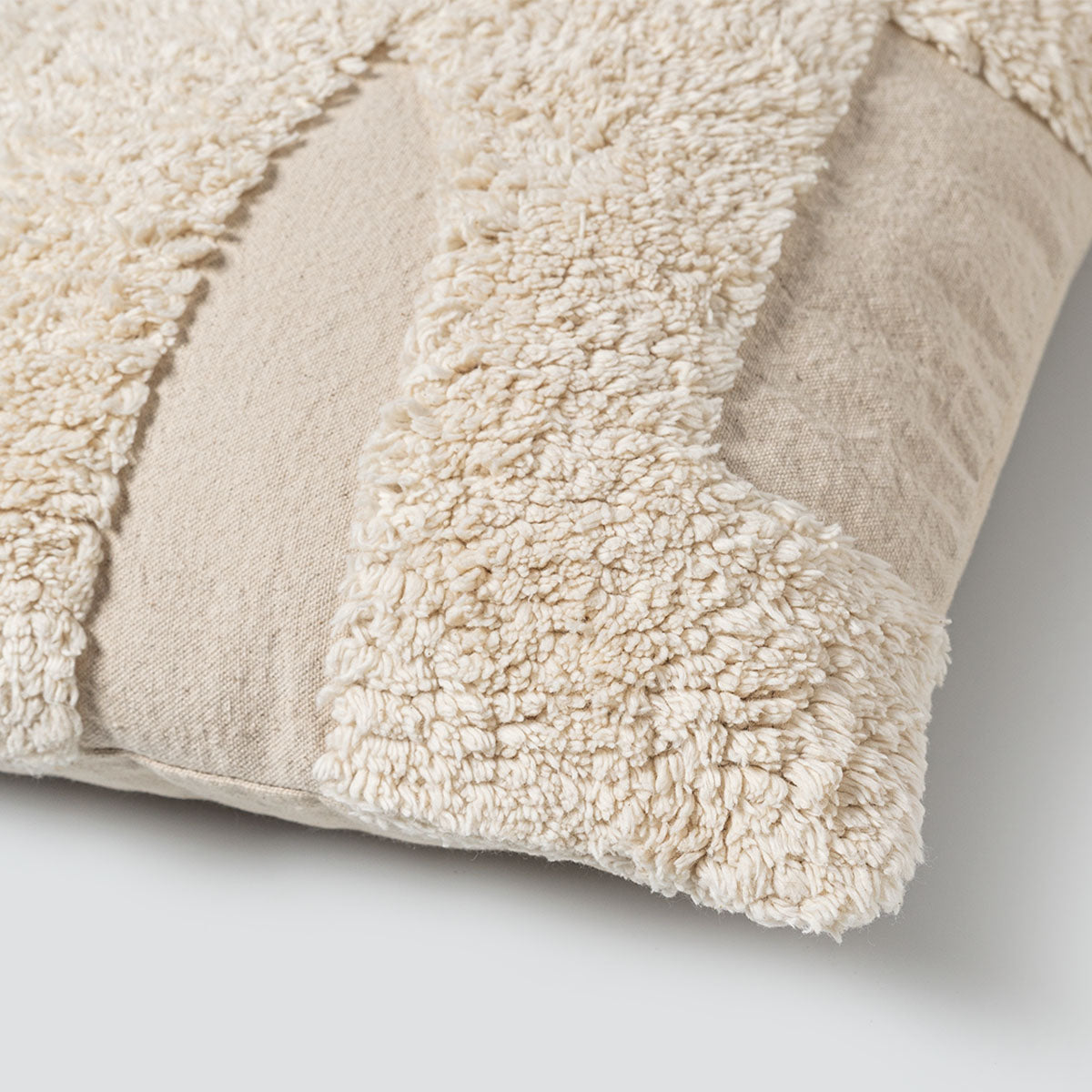 כרית דקורטיבית מעוצבת בכל היופי והרכות שבעולם. דוגמת הכרית משלבת דוגמא אמנותית מופשטת בטקסטורה תלת מימדית, פרוותית ונעימה. הצבעוניות הניטרלית בצבע קרם אצילי תשתלב בכל חדר בבית, שם היא תוסיף טאצ' של אלגנטיות ועידון. כיסוי הכרית נארג מ-100% כותנה איכותית, רכה ונעימה למגע. ניתן לניקוי במכונת הכביסה.