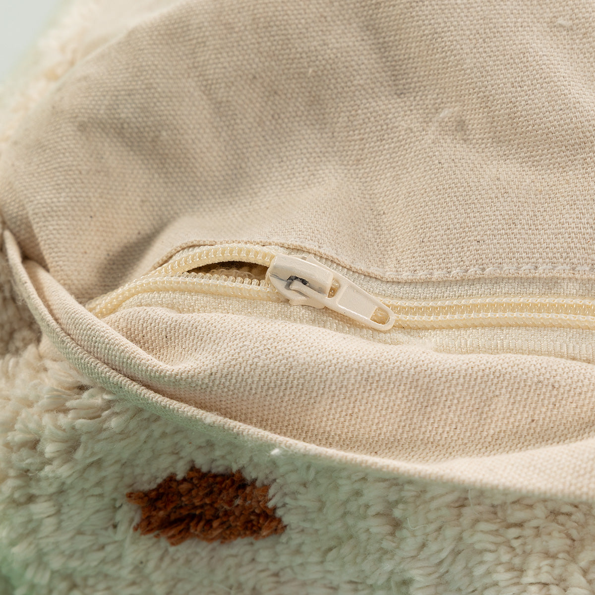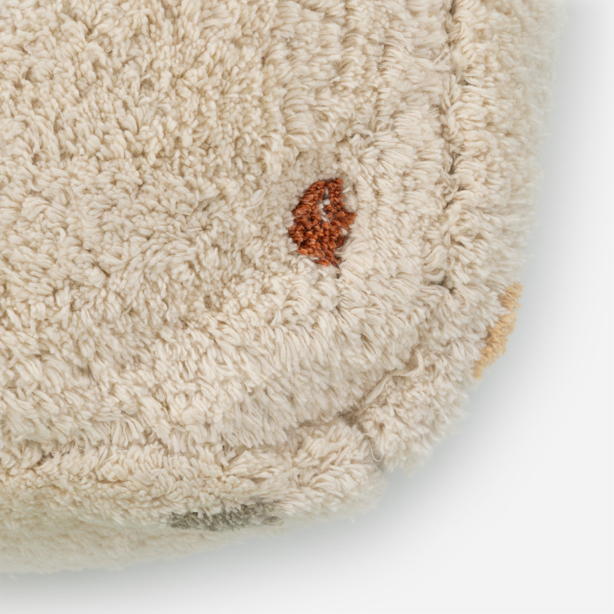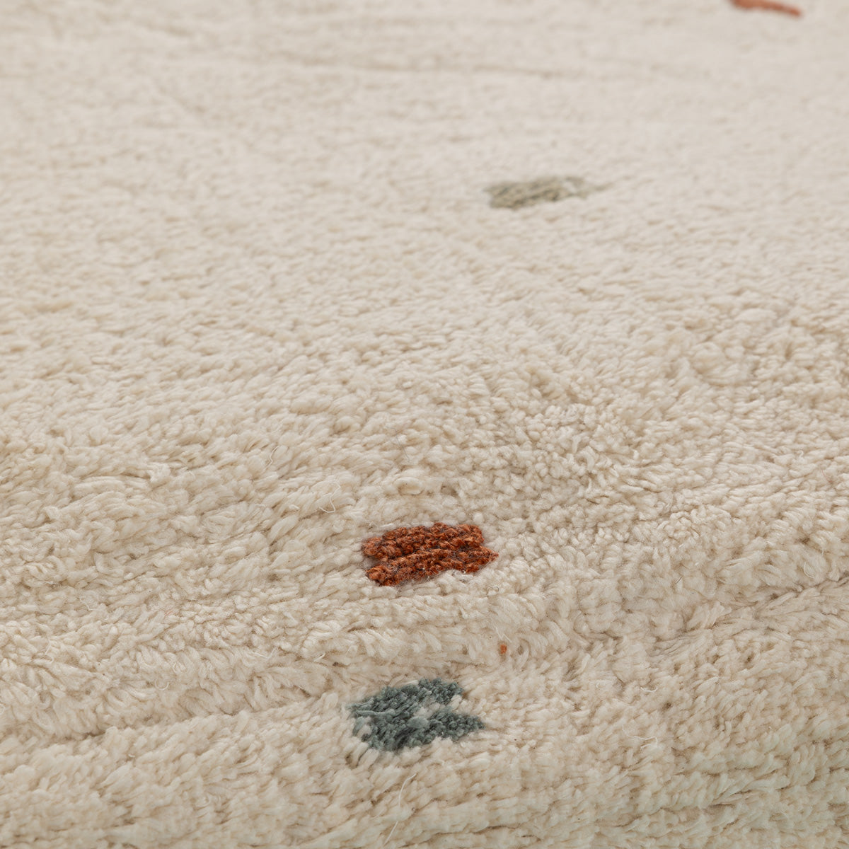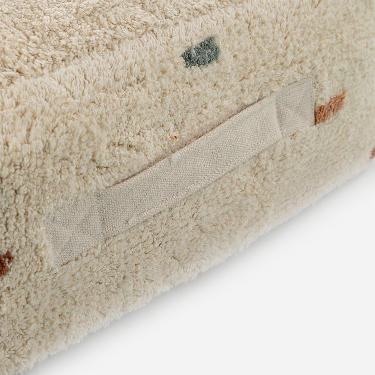 הפוף מגיע בגוון קרם בהיר, עם נקודות צבעוניות בגוונים פסטליים שמוסיפים טאץ' של שמחה שקטה, בדיוק כמו שטיחי הכותנה האהובים מקולקציית Joy ו־Breezer.