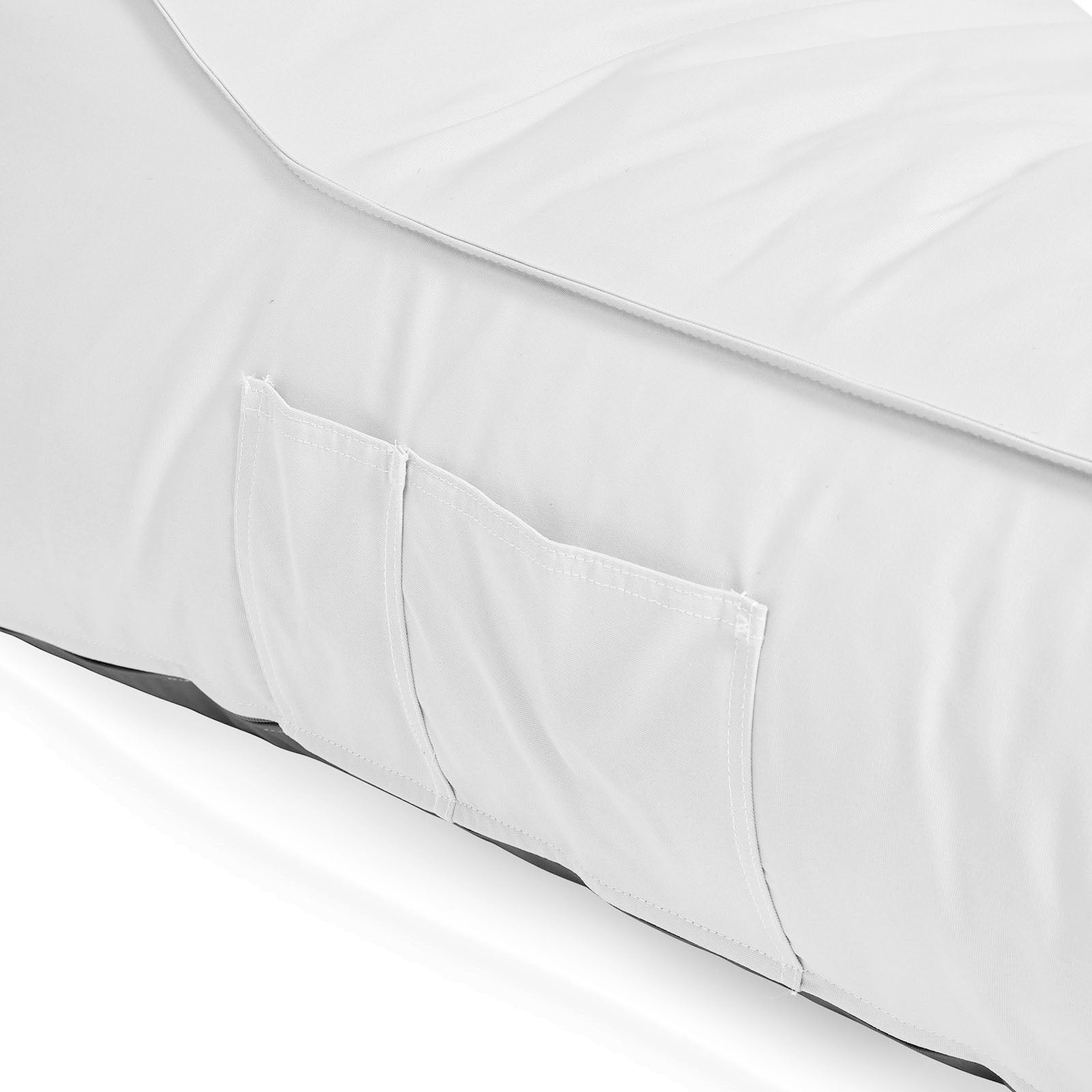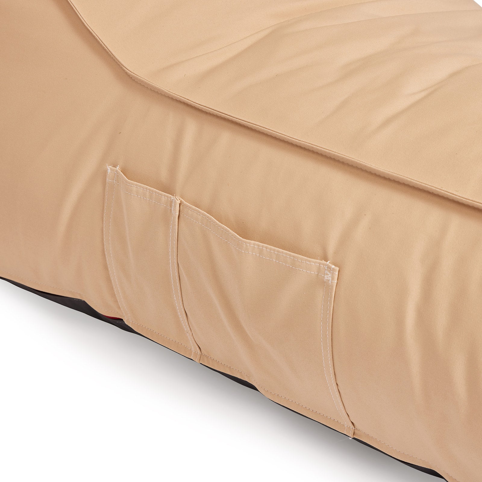 בחוץ – הוא הופך למיטת שיזוף שיקית ליד הבריכה או לפינת רביצה מושלמת במרפסת. קל לניקוי, עמיד במים, וכולל שכבת איטום ששומרת עליו ברוב תנאי מזג האוויר.