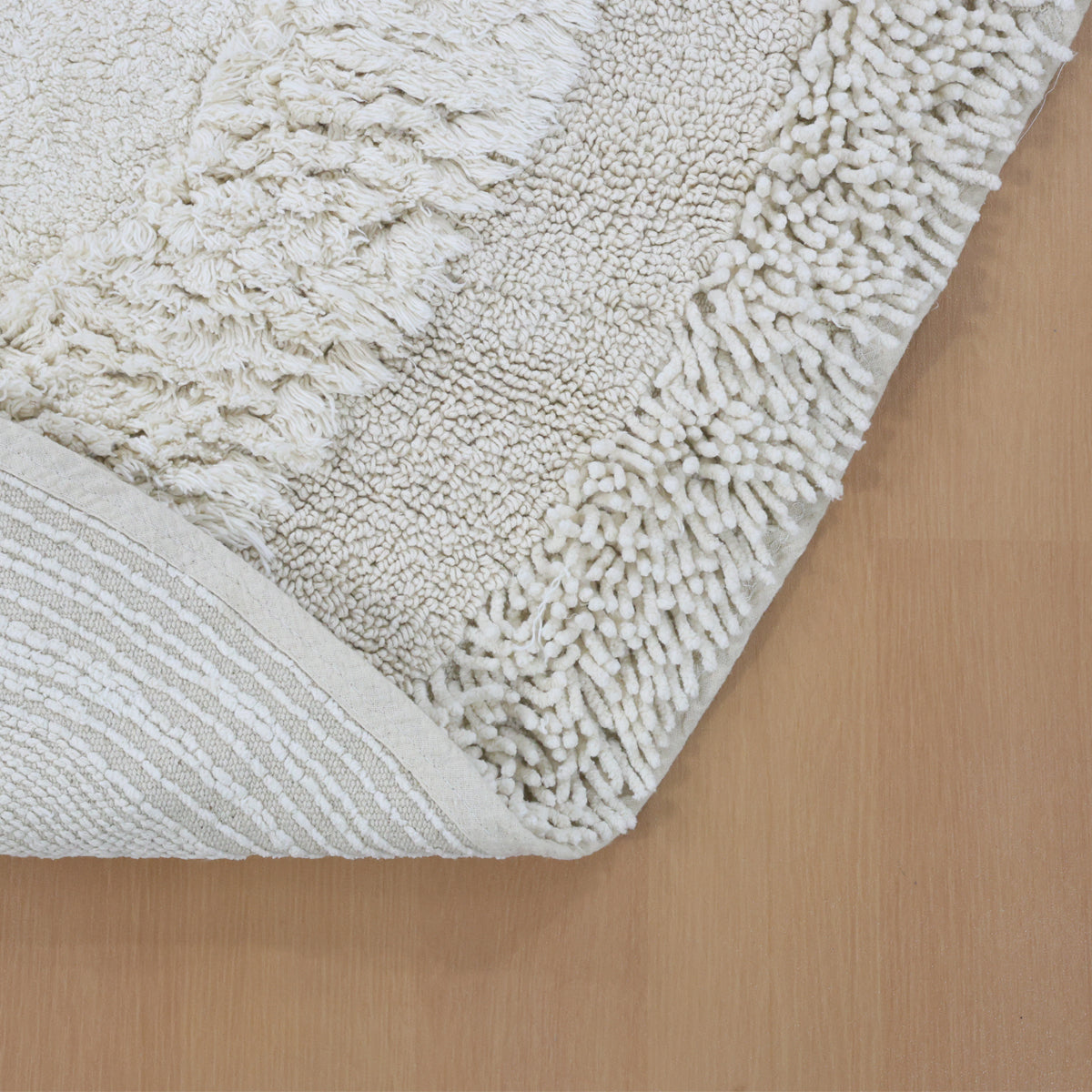שטיח ריף מגיע בגווני קרם־בז’ עדינים ומכיל שילוב של שיטות אריגה שונות, שיוצרות שכבות של מרקמים וצפיפות משתנה – שמוסיפה תחושת תנועה, נפח ועניין ויזואלי.