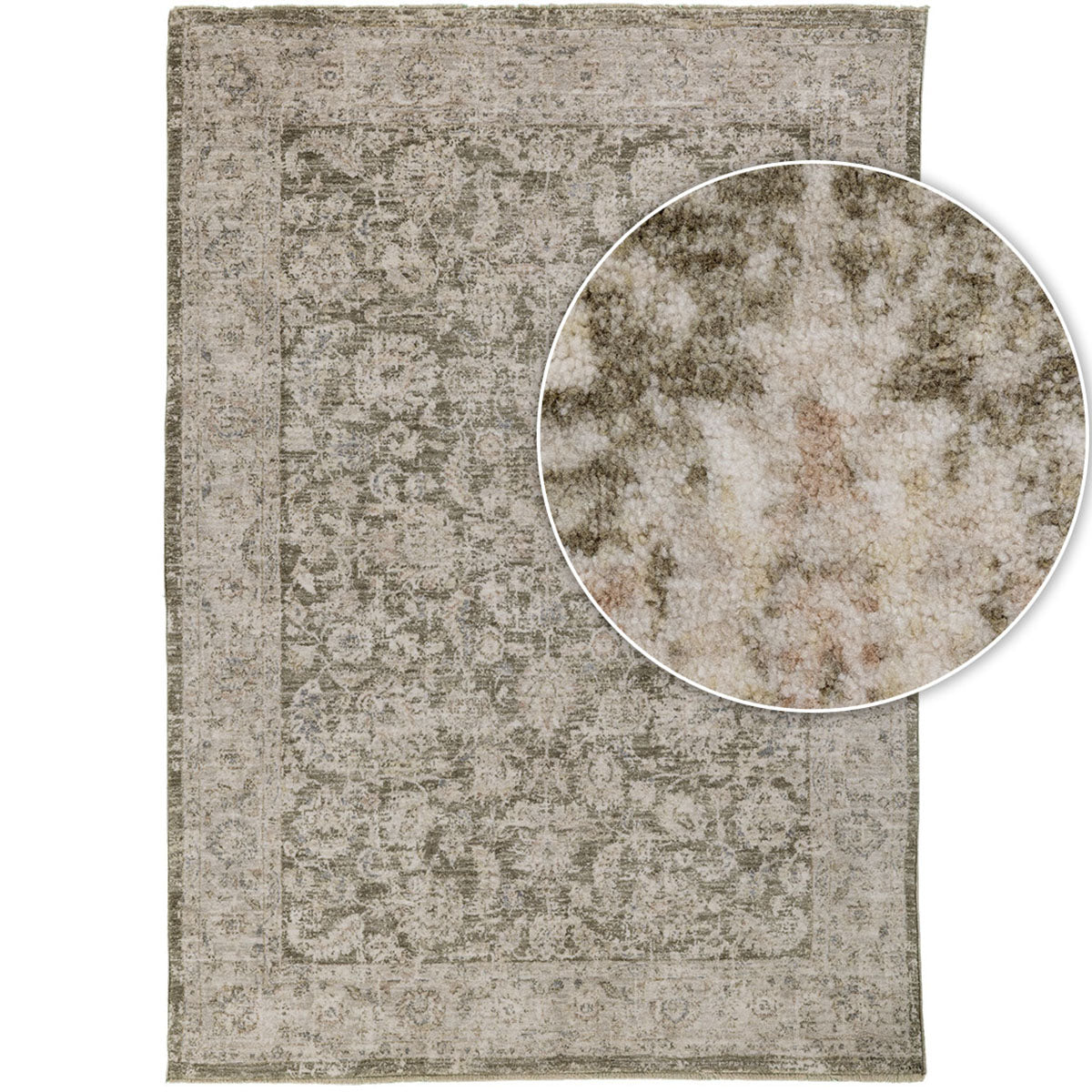 דוגמת הוינטג' נוצרה בהשראת עיצובים קלאסיים, משתלבת בהרמוניה עם גווני קרם בהירים. המראה השחוק העדין תורם לאופי הייחודי של השטיח, ומעניק לו עומק ונוכחות אלגנטית מבלי להכביד על החלל.