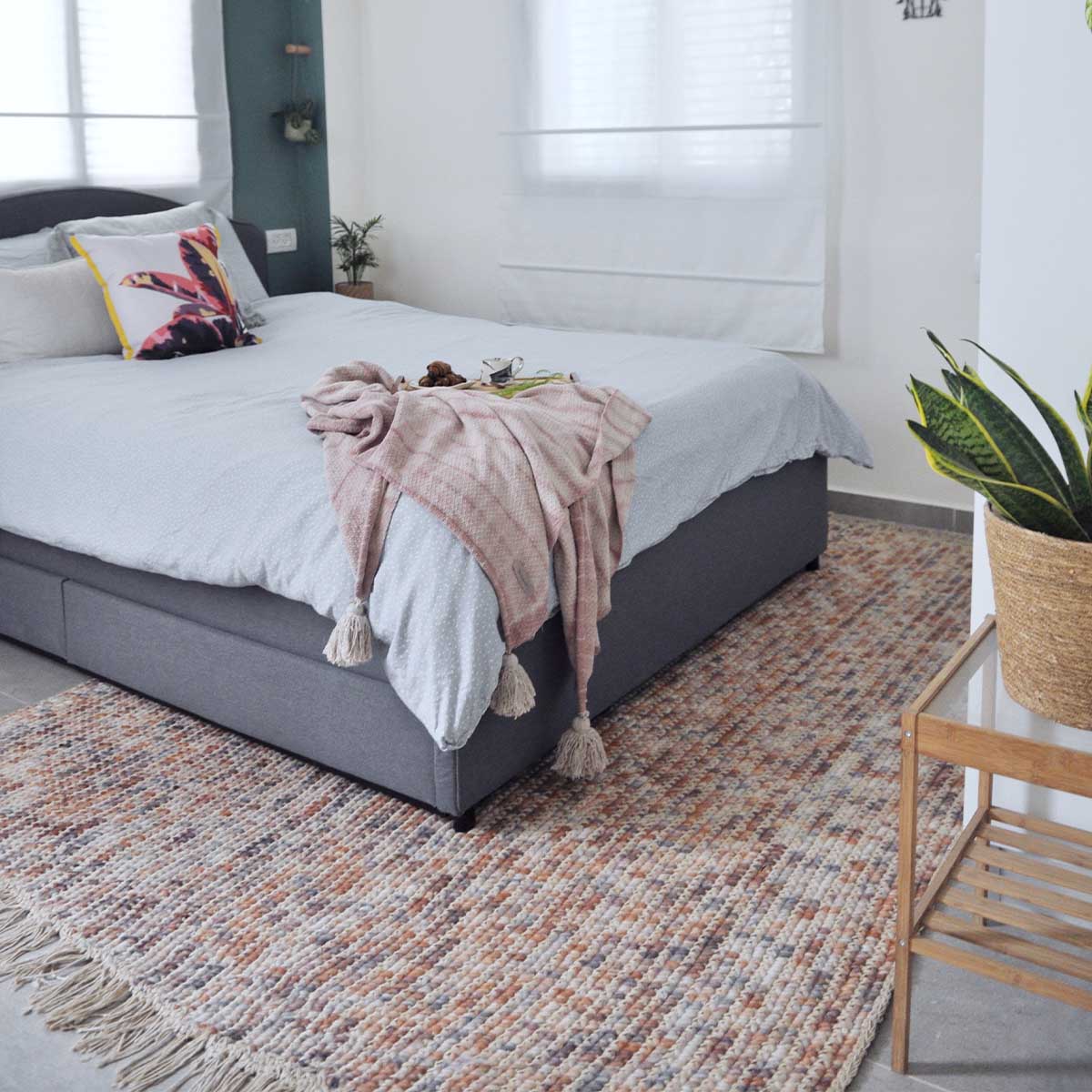 שטיח תמר אריגה גסה 10 קרם/צבעוני עם פרנזים TAMAR