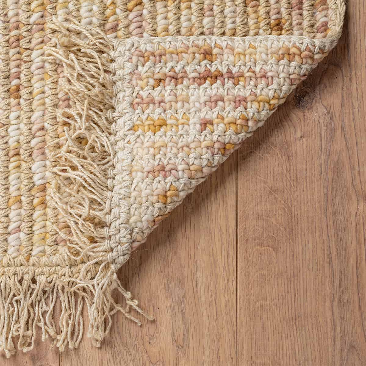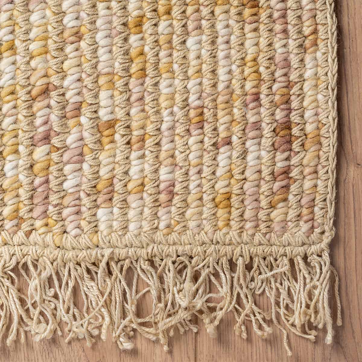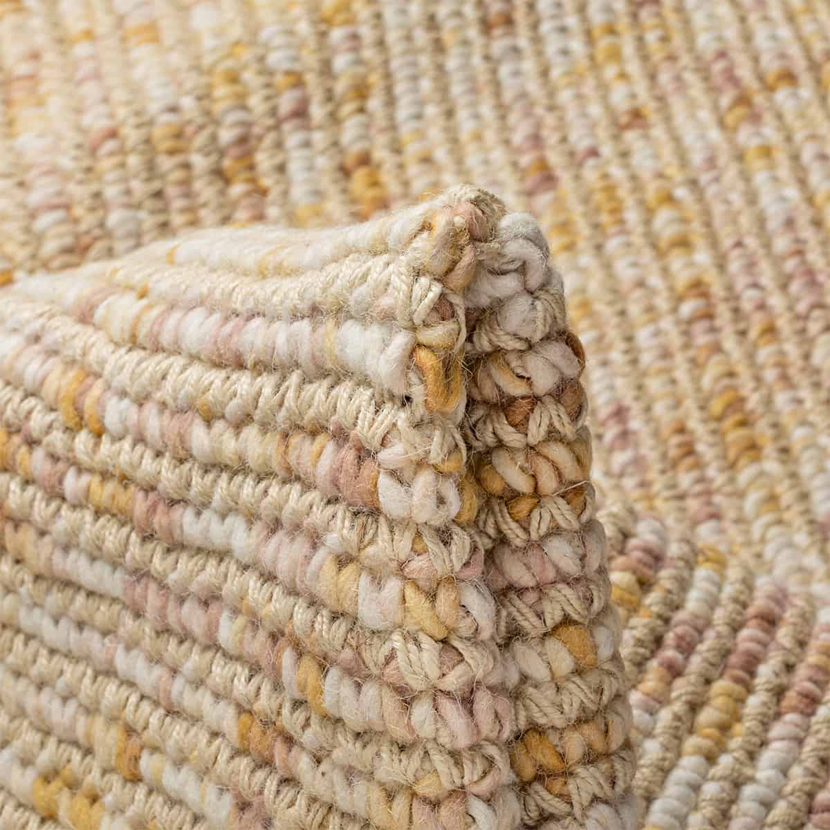 שטיח חבל קלוע במראה טבעי, הנארג בעבודת יד מוקפדת. מעוצב בסגנון שיקי במיוחד, בצבעוניות נעימה בגווני קרם, ורוד וצהוב, מעוטר בסיומת פרנזים עשירה. השטיח מיוצר בשיטת אריגה ייחודית אשר משווה לו מראה אותנטי ומלא בחמימות מזמינה. נחשב לבחירה מנצחת עבור בתים בסגנון סקנדינבי ובוהו -שיק