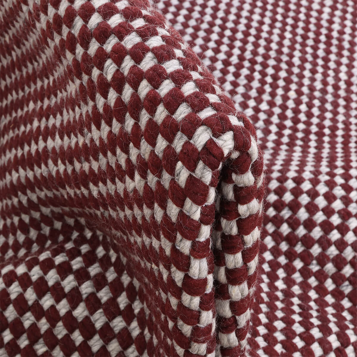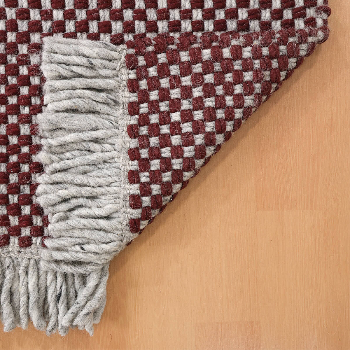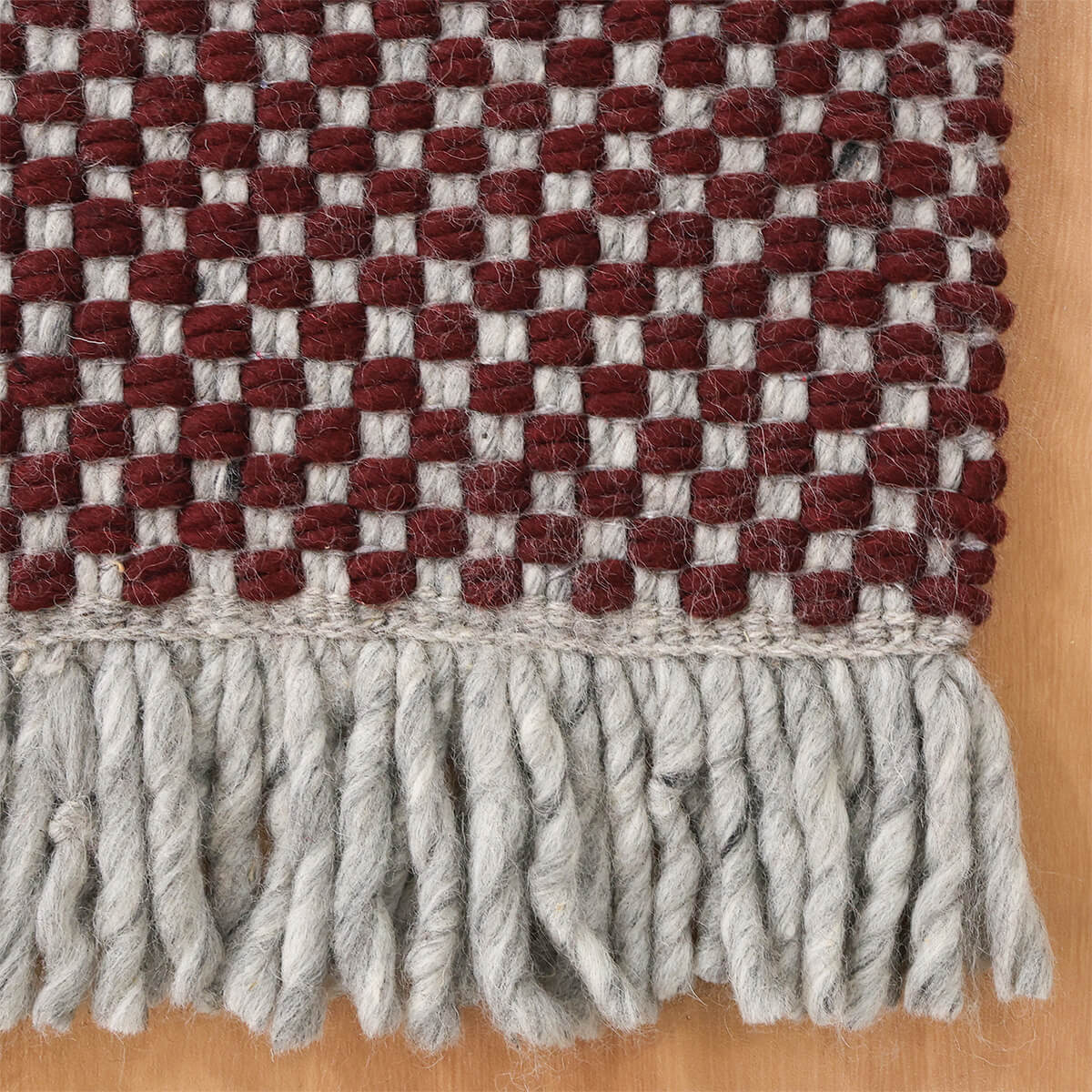 שטיח במראה טבעי סופר פוטוגני, מעוטר בסיומת פרנזים שיקית. בעל דוגמא חלקה ומראה אותנטי. השטיח נארג בעבודת יד מוקפדת מצמר ניו זילנדי הנחשב לצמר האיכותי ביותר. מעוצב בגוון בורדו אלגנטי ומעודן.