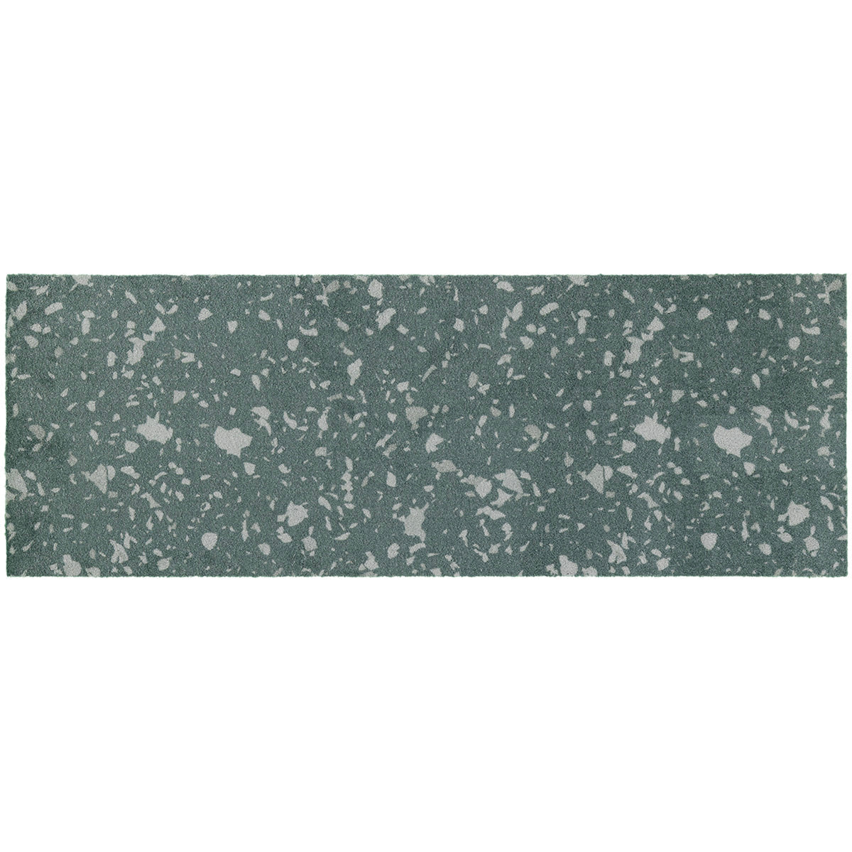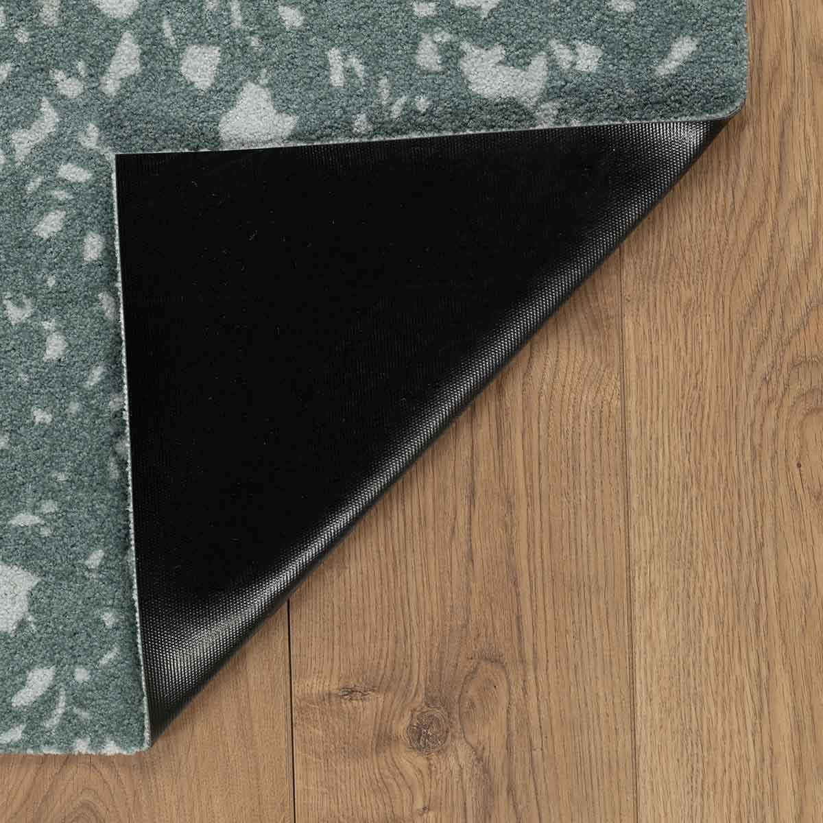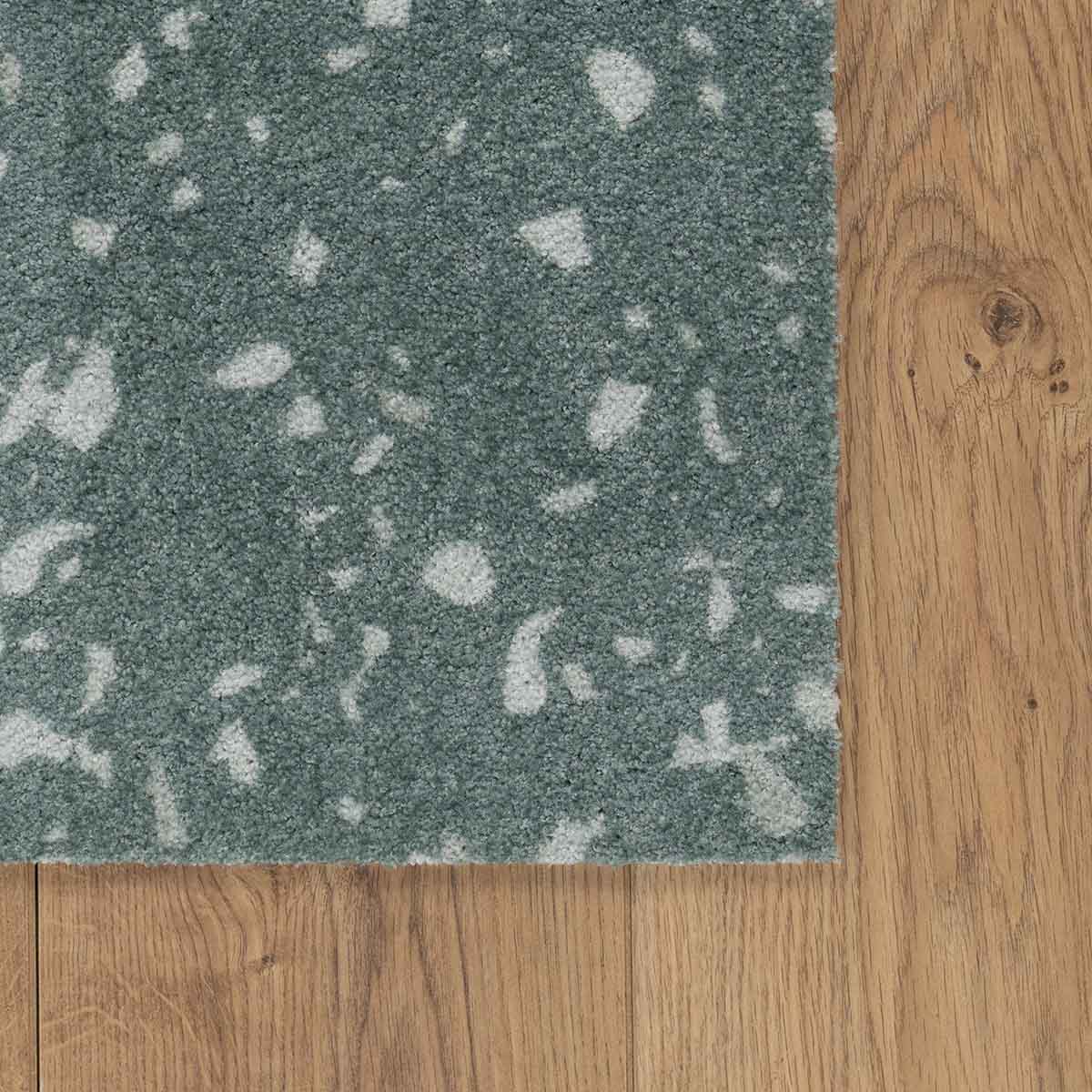 שטיח טרצו 04 ירוק מעוטר בצבעוניות אפורה עדינה על רקע ירוק עמוק, ליצירת מראה מעניין אך שקט, שמתאים כמעט לכל סגנון עיצוב, מסקנדינבי, דרך אקלקטי ועד מודרני - מינימליסטי.