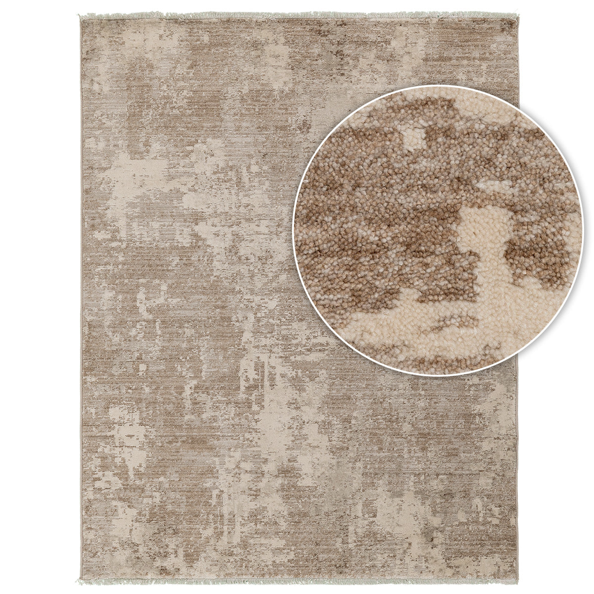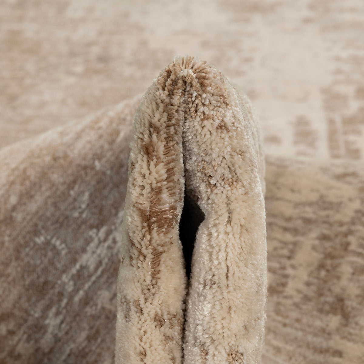 שטיח טימבר מקולקציית Aura הוא שטיח מודרני המביא לידי ביטוי מראה טבעי, גולמי ומרשים. העיצוב שלו מתאפיין בטקסטורה אבסטרקטית עשירה המזכירה טבעות עץ או שכבות של סלע טבעי ומעניקה לרצפה עומק ויזואלי יוצא דופן. השילוב בין גווני הקרם הבהירים לטונים של חום ואדמה מייצר מראה חם המוסיף אופי וייחודיות לכל חלל מגורים.