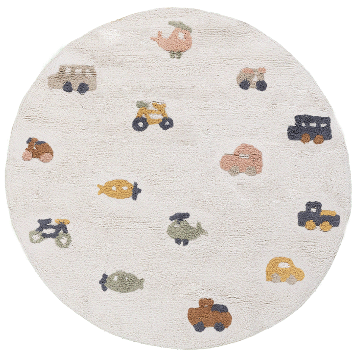 שטיח אורבן הוא שטיח כותנה עגול עם דוגמאות של כלי תחבורה, מכוניות, רכבים, אופניים ואפילו מסוקים שנטוו באריגה מובלטת על רקע קרם עדין. השילוב בין הצבעוניות העדינה לטקסטורה התלת־ממדית יוצר שטיח מלא חיים שמזמין משחק, ומוסיף עניין לכל חדר ילדים. רך, נעים לדריכה וקל לניקוי – בדיוק מה שהורים וילדים מחפשים. שטיח אורבן הוא שטיח כביס - ראו הוראות כביסה בטאב טיפול בשטיח. מאחר והשטיח עשוי כותנה טבעית, עשויה להופיע פלומה בתחילת השימוש. זו תופעה טבעית לחלוטין שמאפיינת סיבים נושמים ואיכותיים. שאיבה סדירה תסייע להפחתת הפלומה עד להיעלמותה, מבלי לפגוע באיכות או בעובי השטיח.